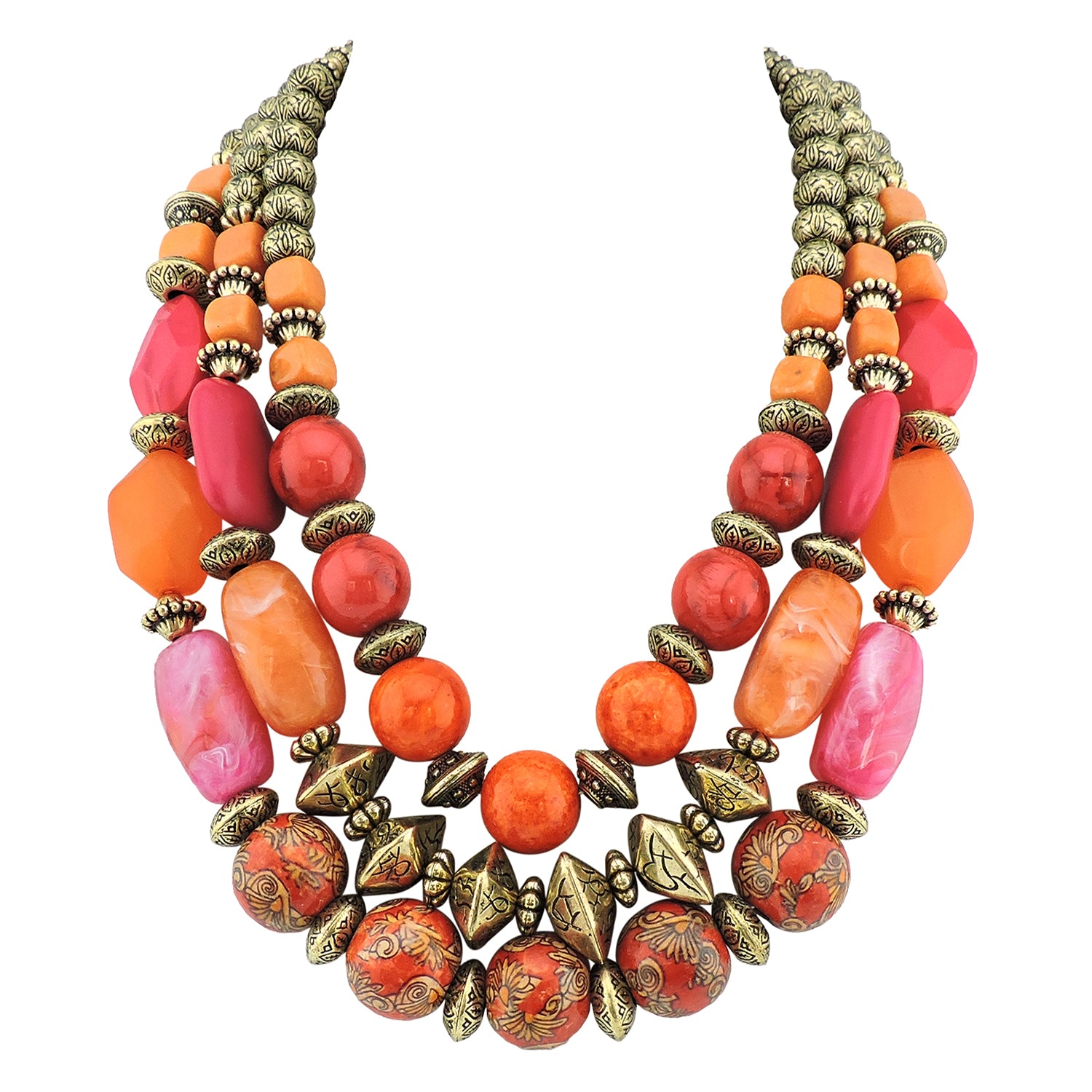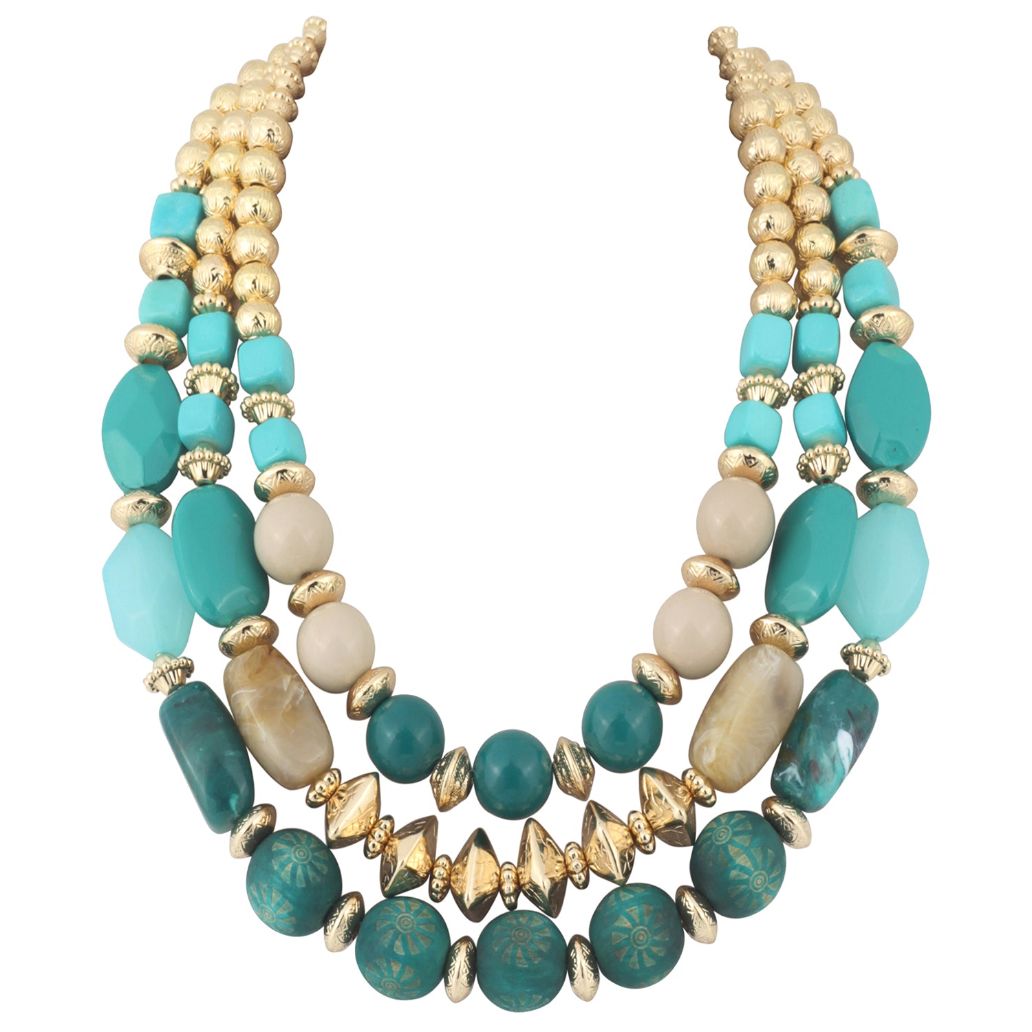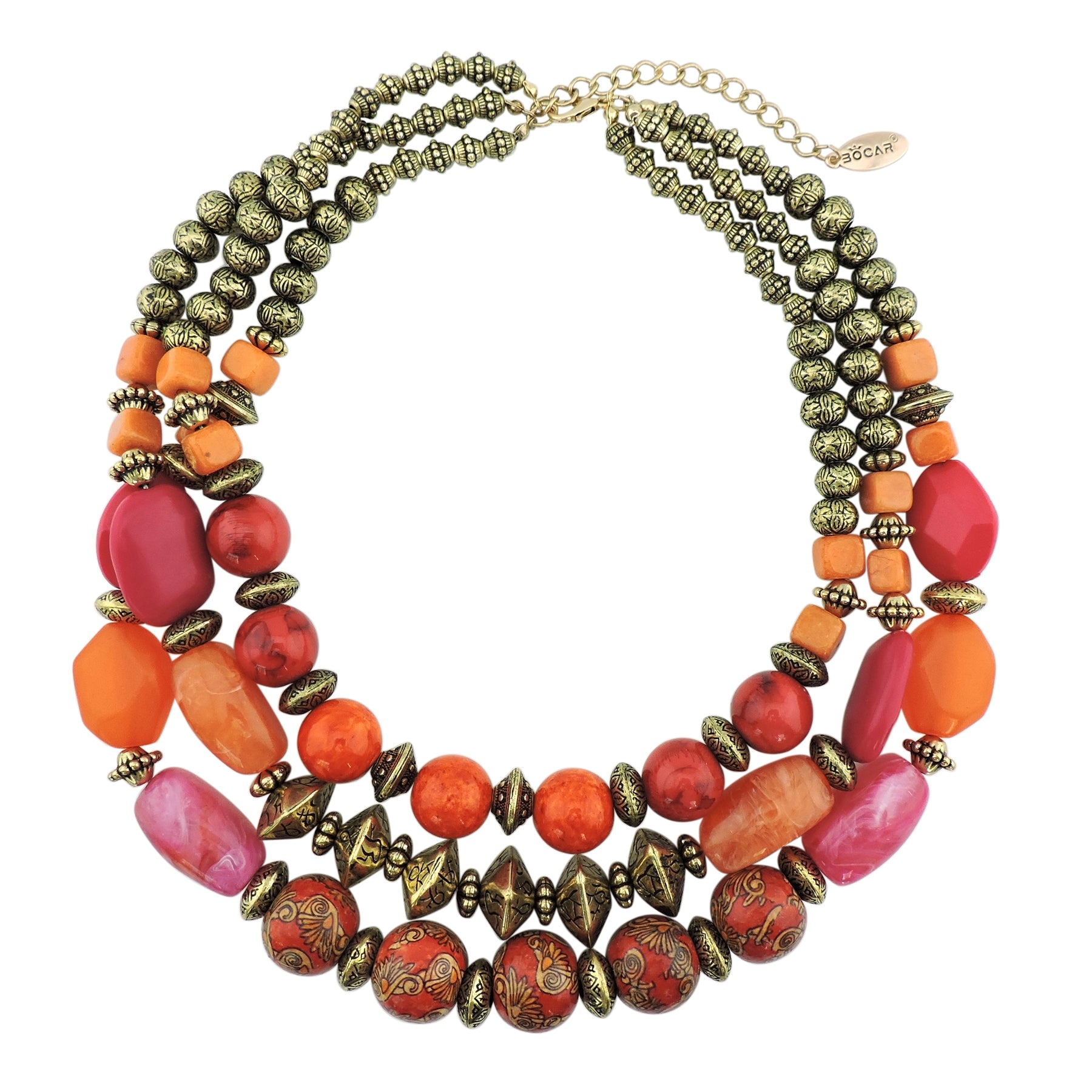 BOCAR 3 Layer Chunky Statement Beaded Necklace Fashion Multi Layer Women Collar Necklace