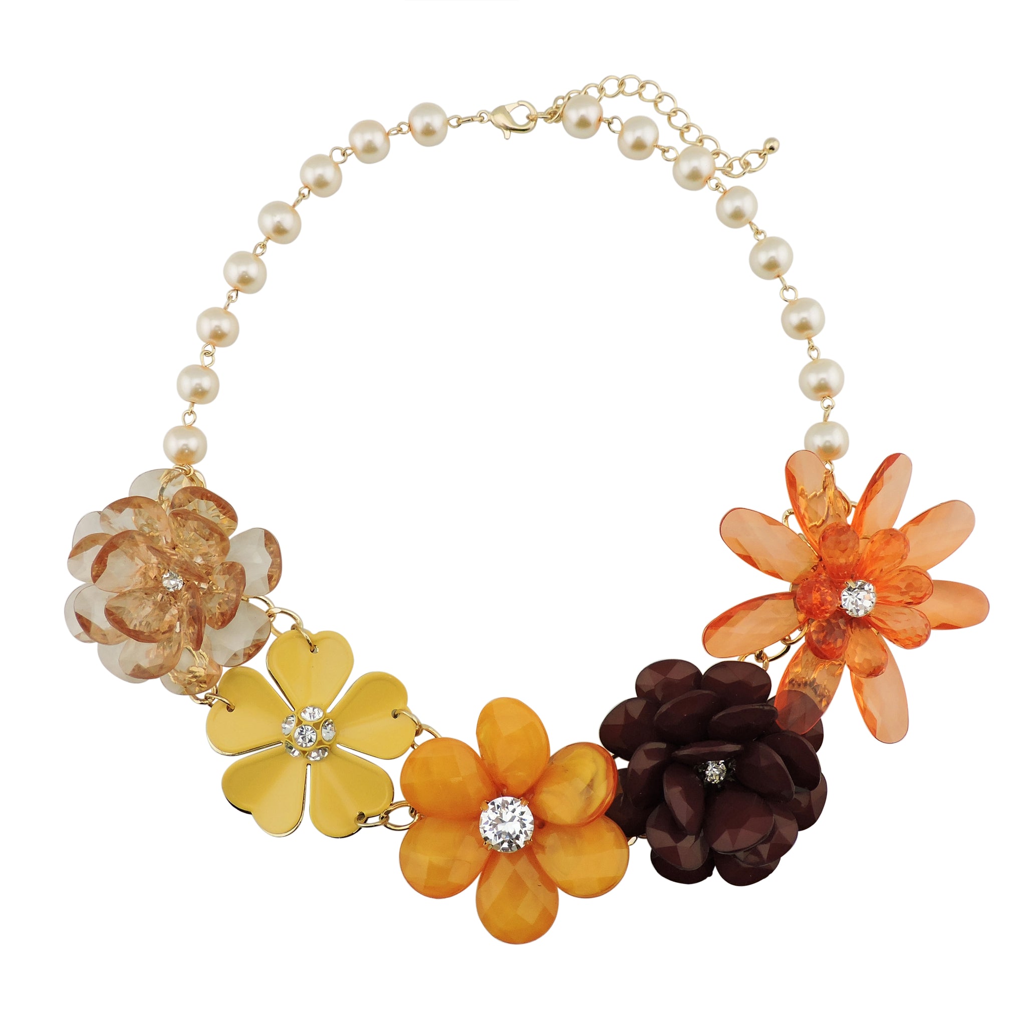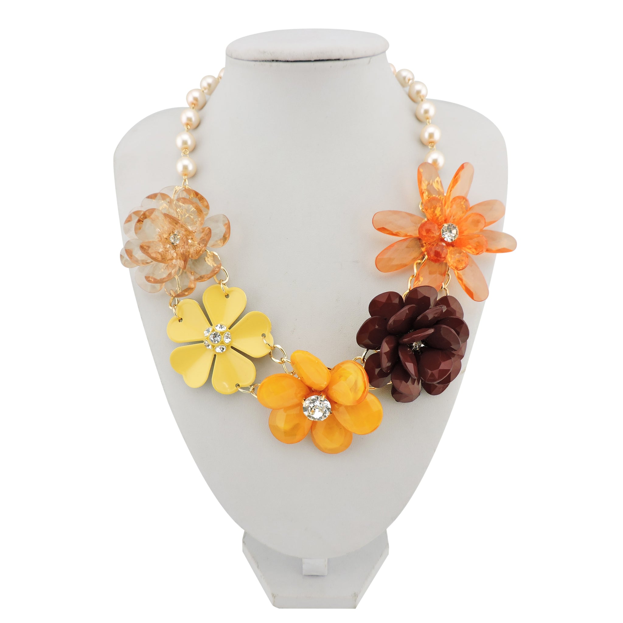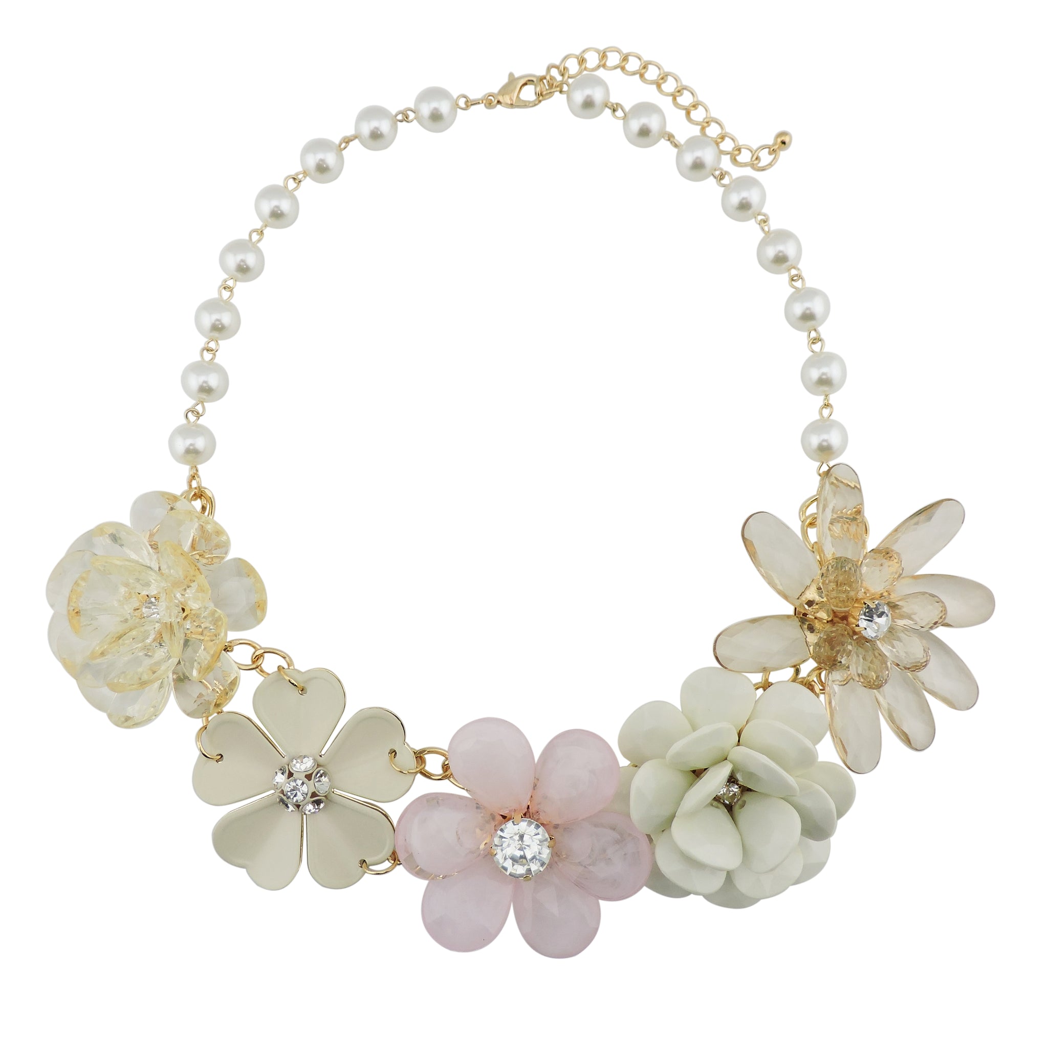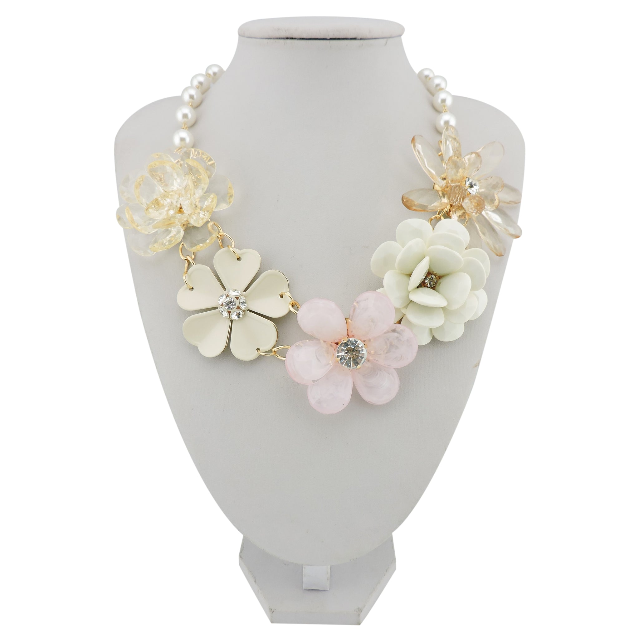 BOCAR 5 Flower Braided Crystal Statement Chunky Necklace Bib Collar Pearl Jewelry for Women