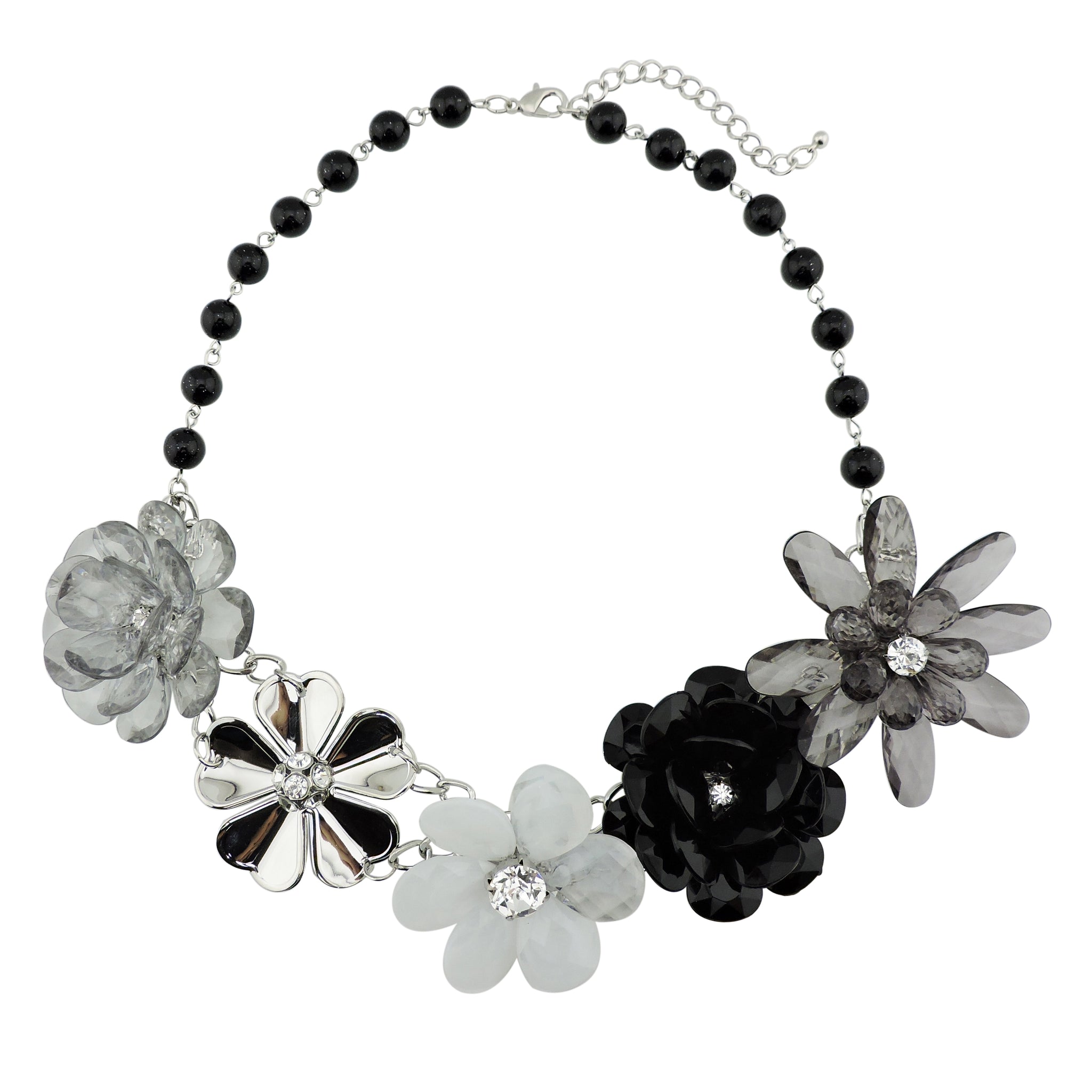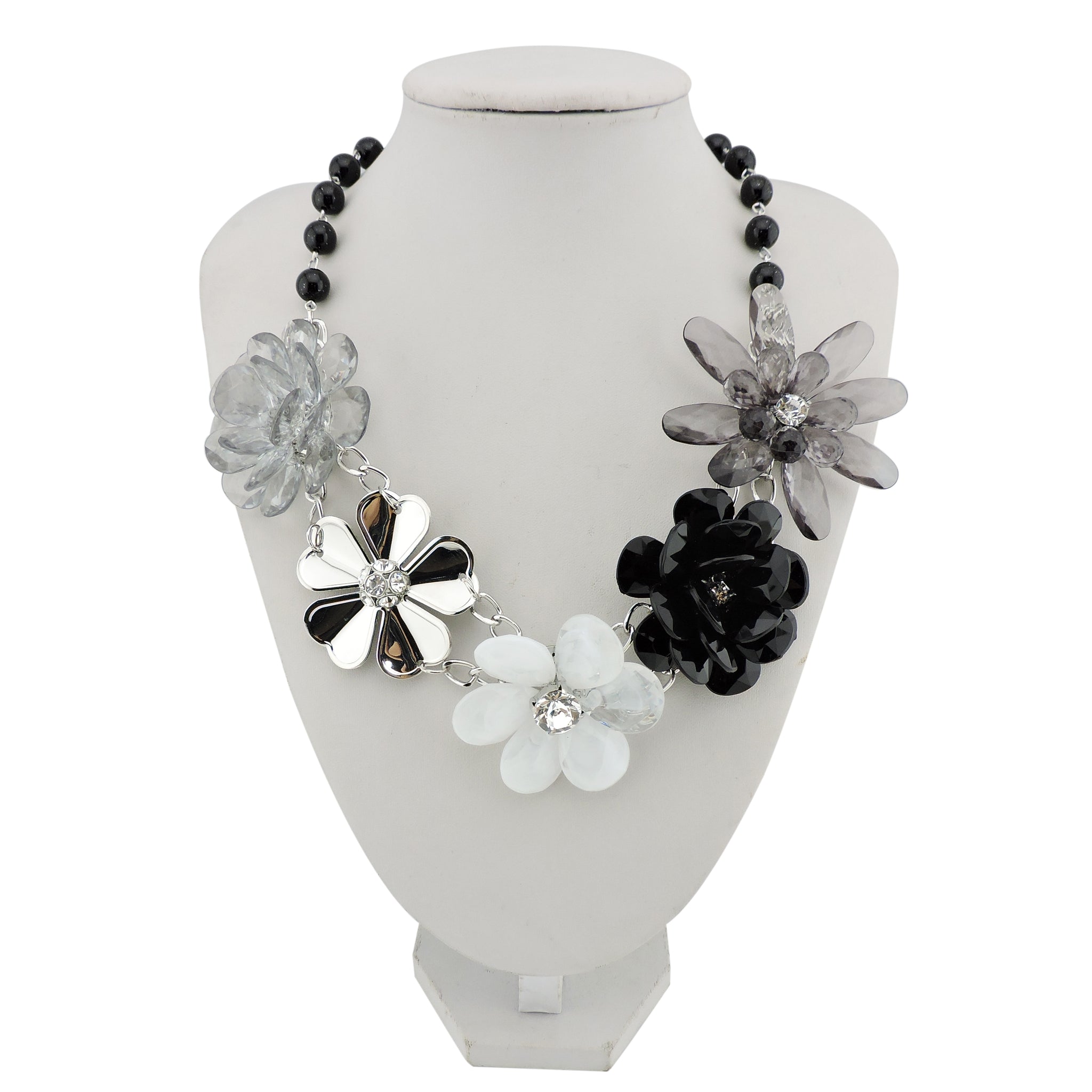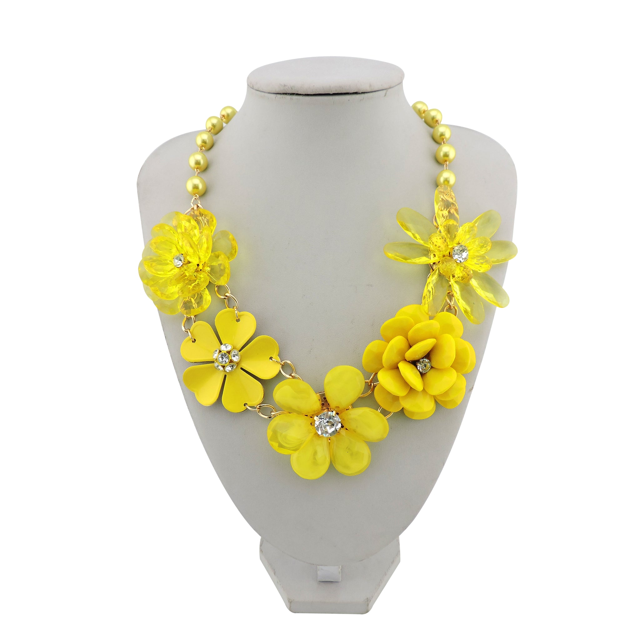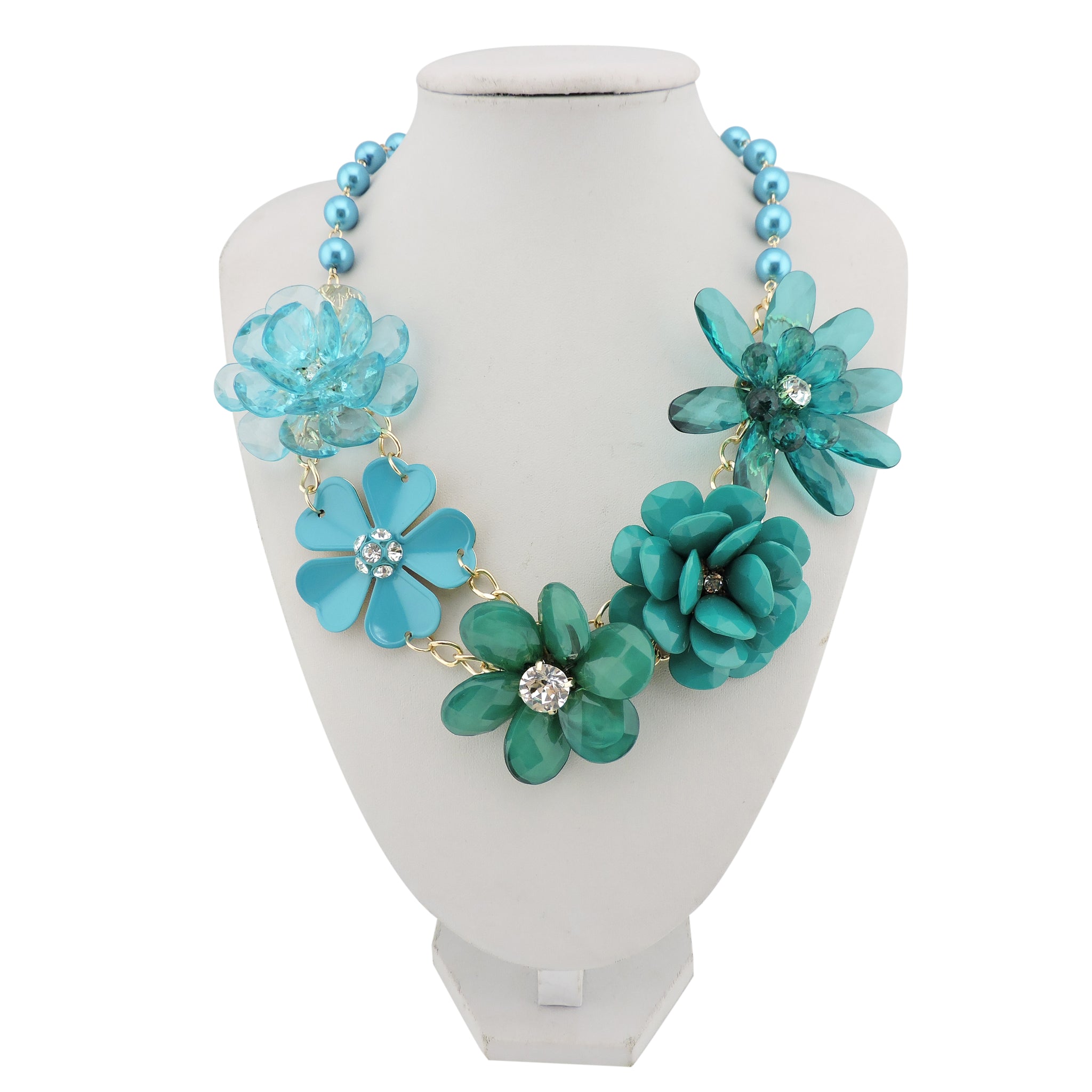 BOCAR 5 Flower Braided Crystal Statement Chunky Necklace Bib Collar Pearl Jewelry for Women