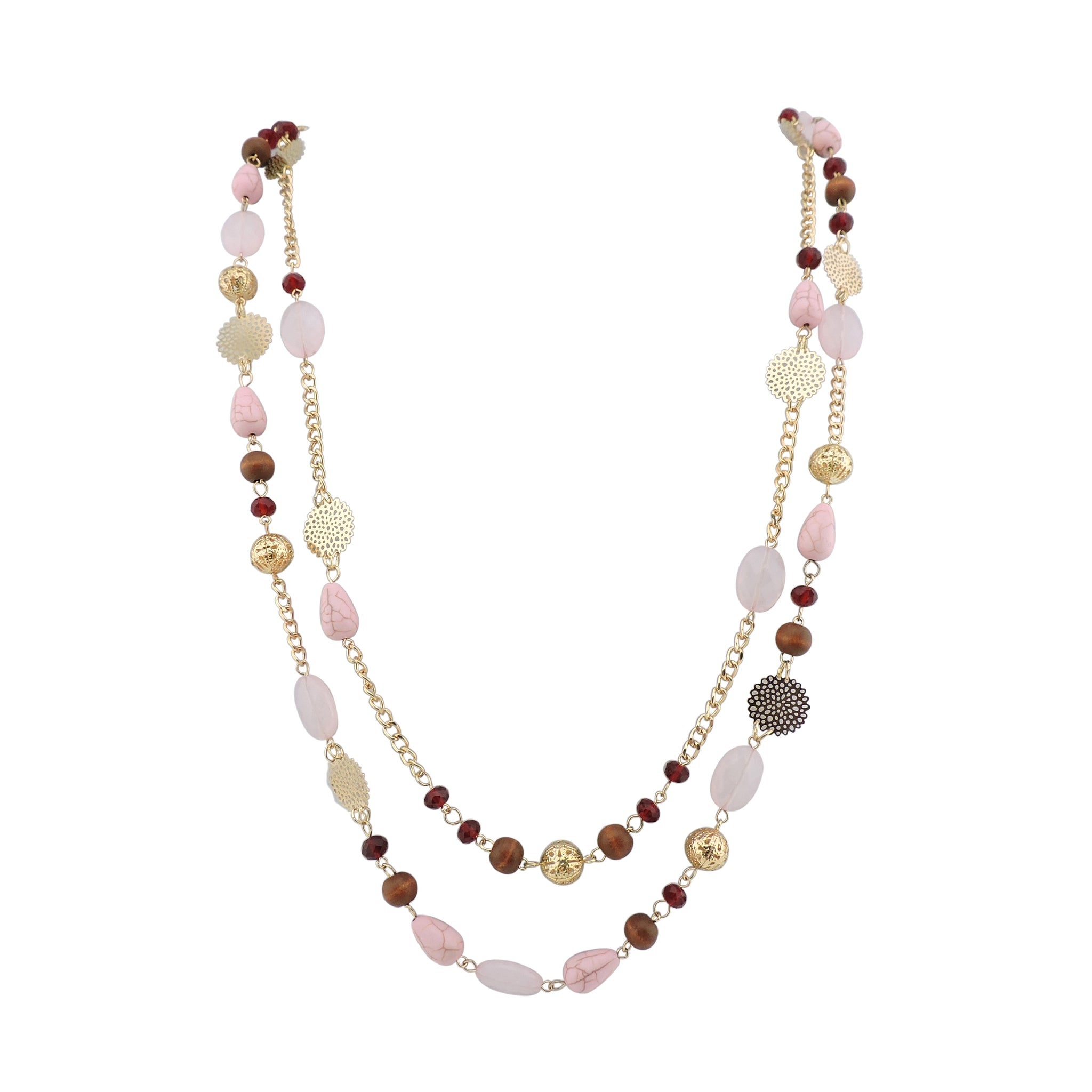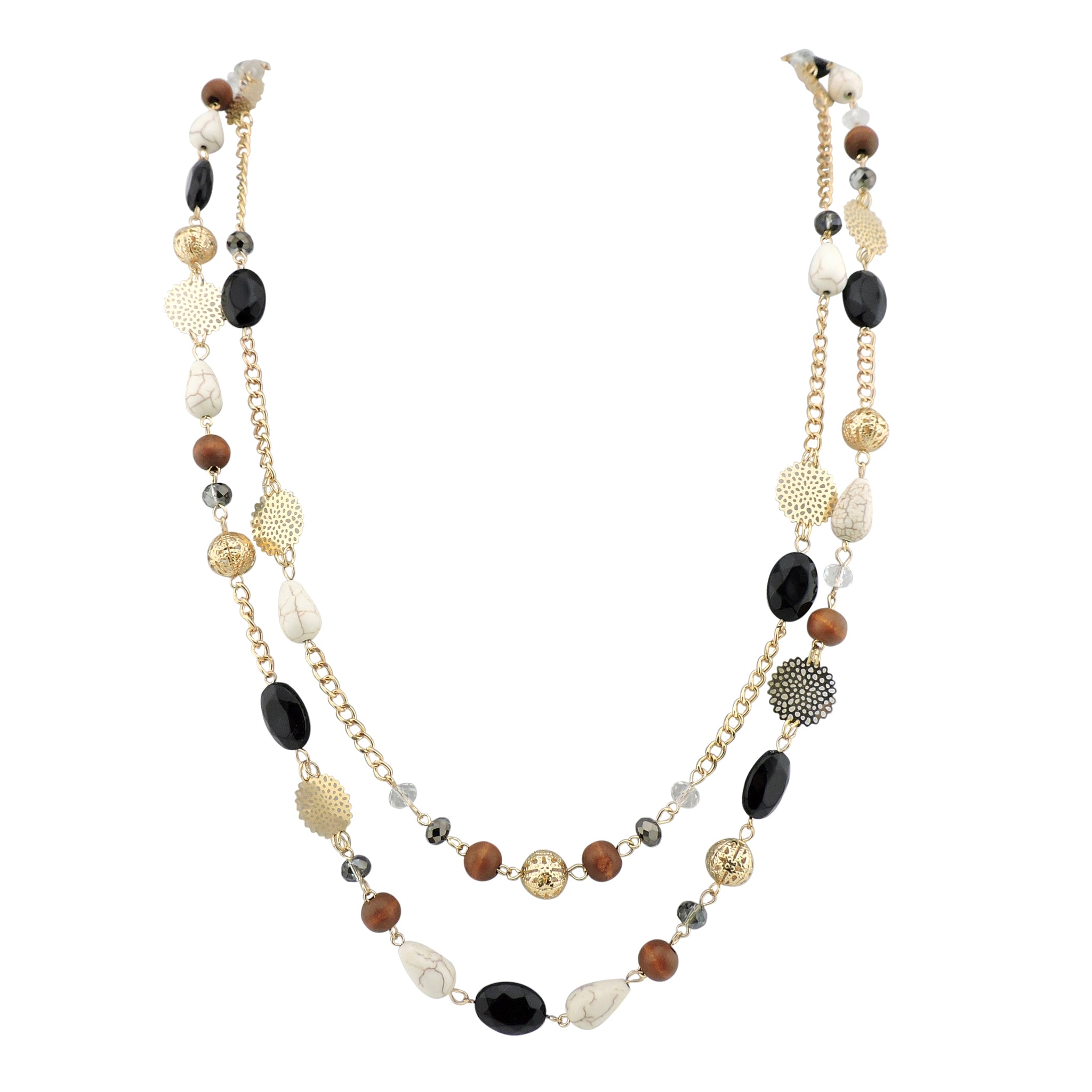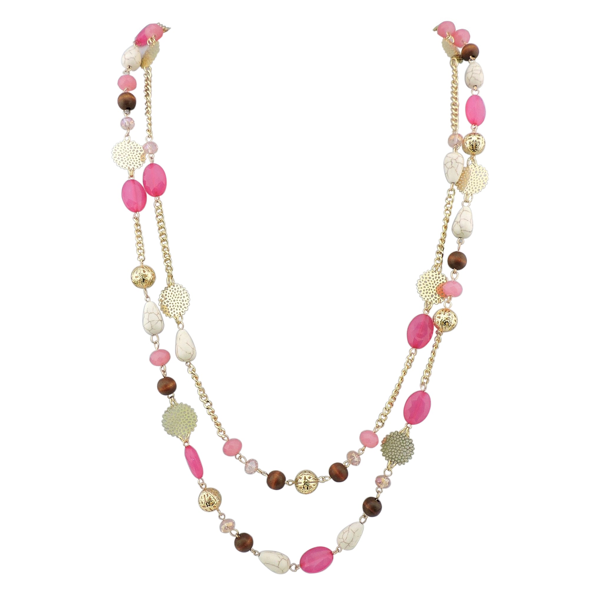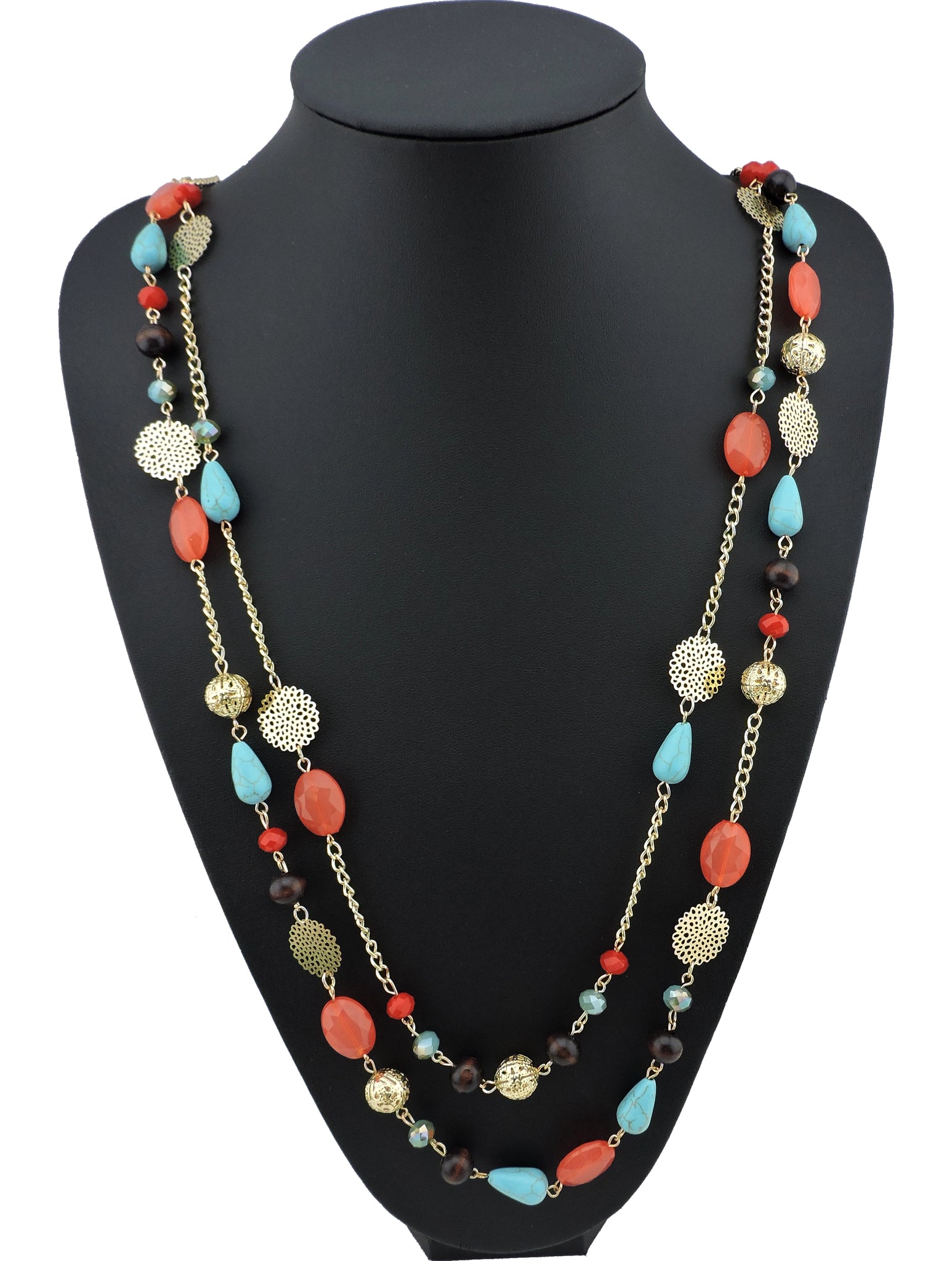 BOCAR Link Chain 2 Layer Crystal Wood Acrylic Colorful Women Party Long Necklace Gift