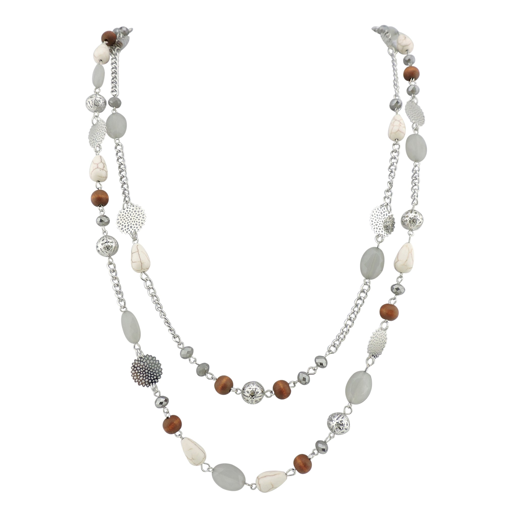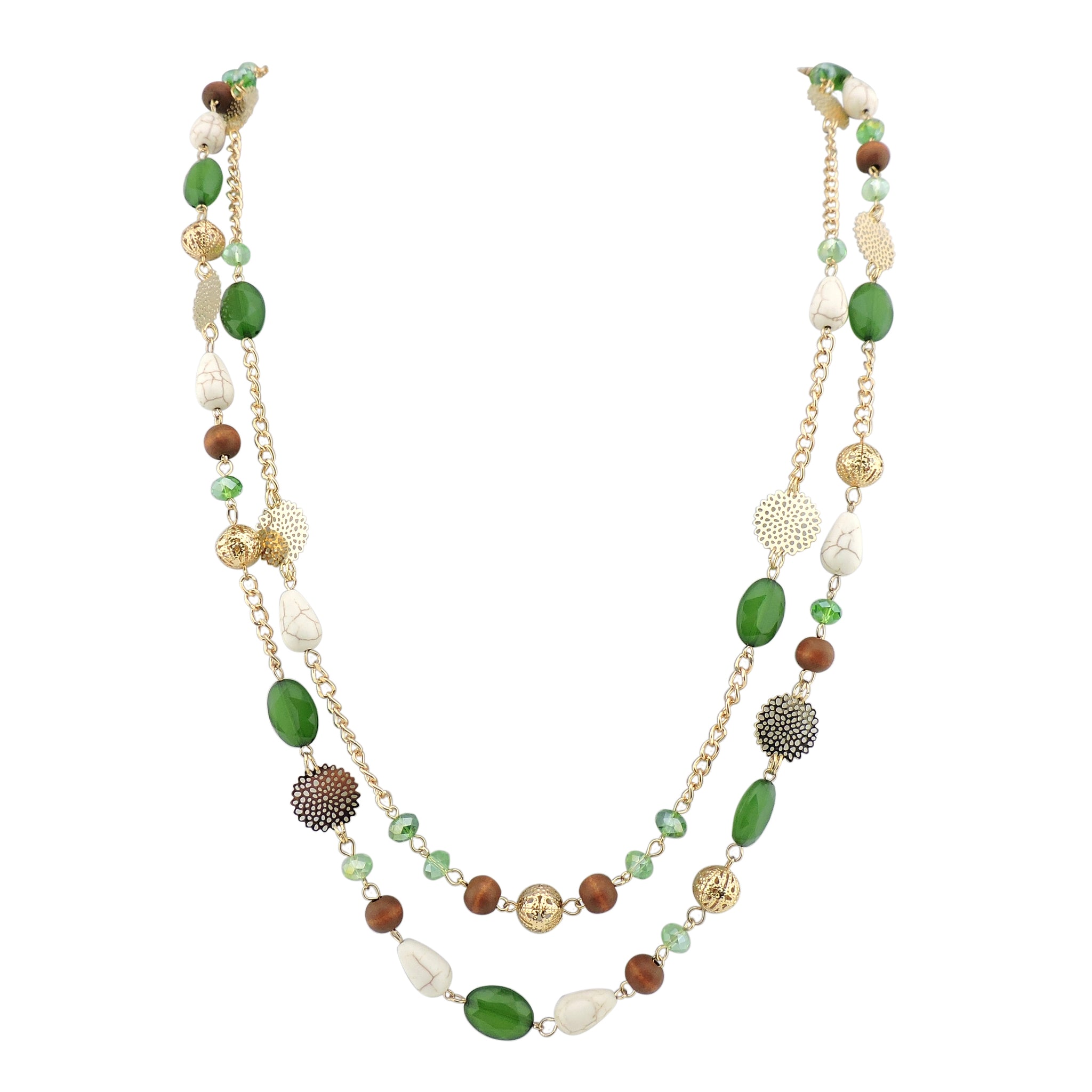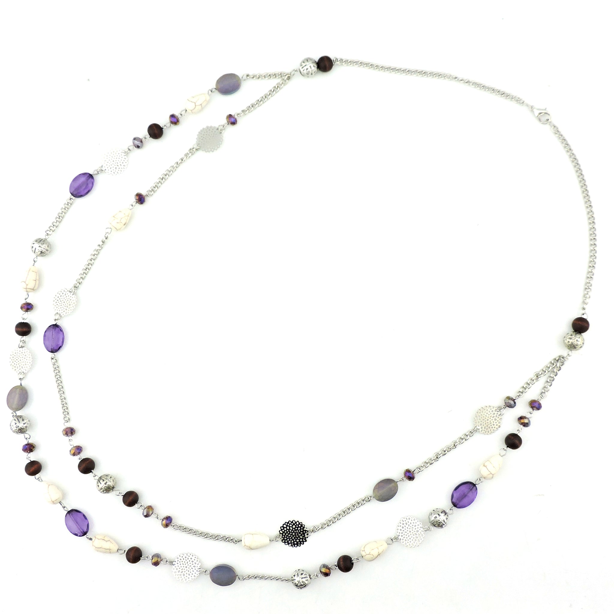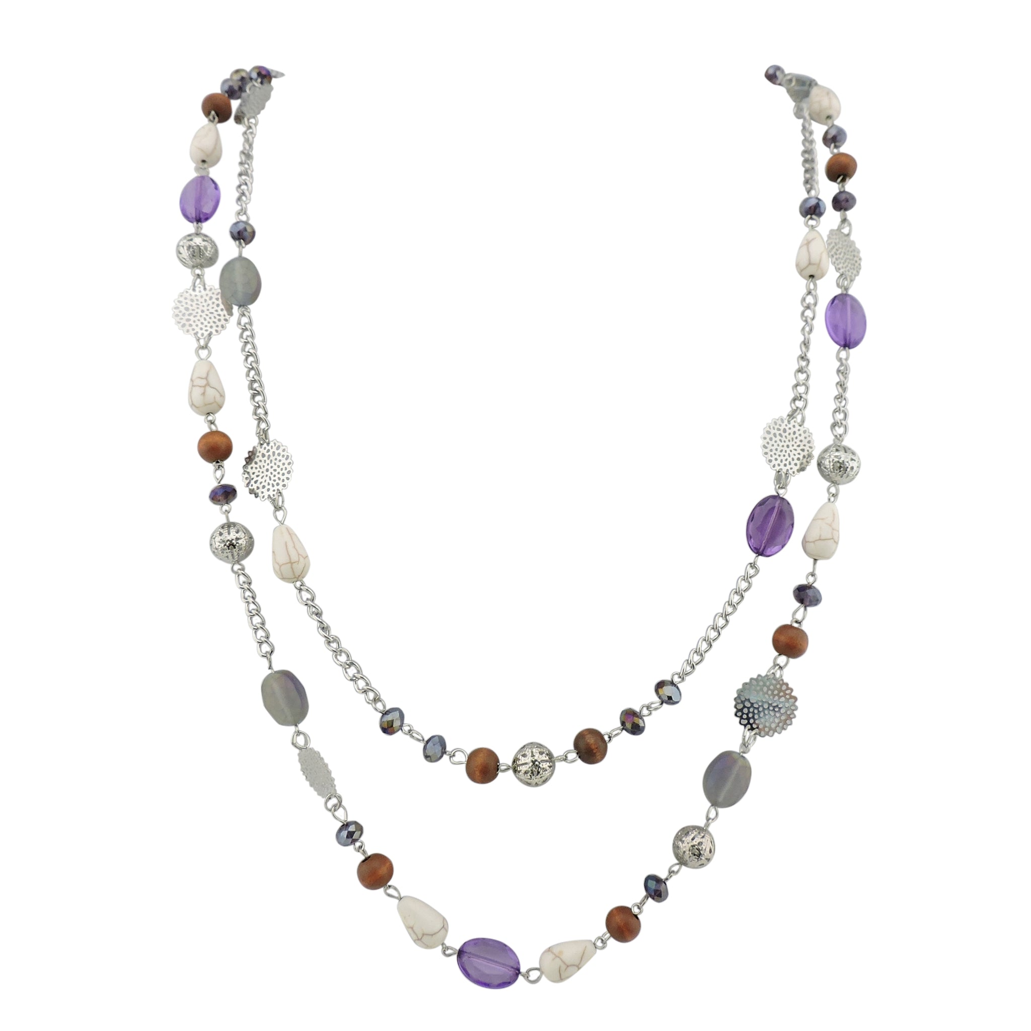 BOCAR Link Chain 2 Layer Crystal Wood Acrylic Colorful Women Party Long Necklace Gift