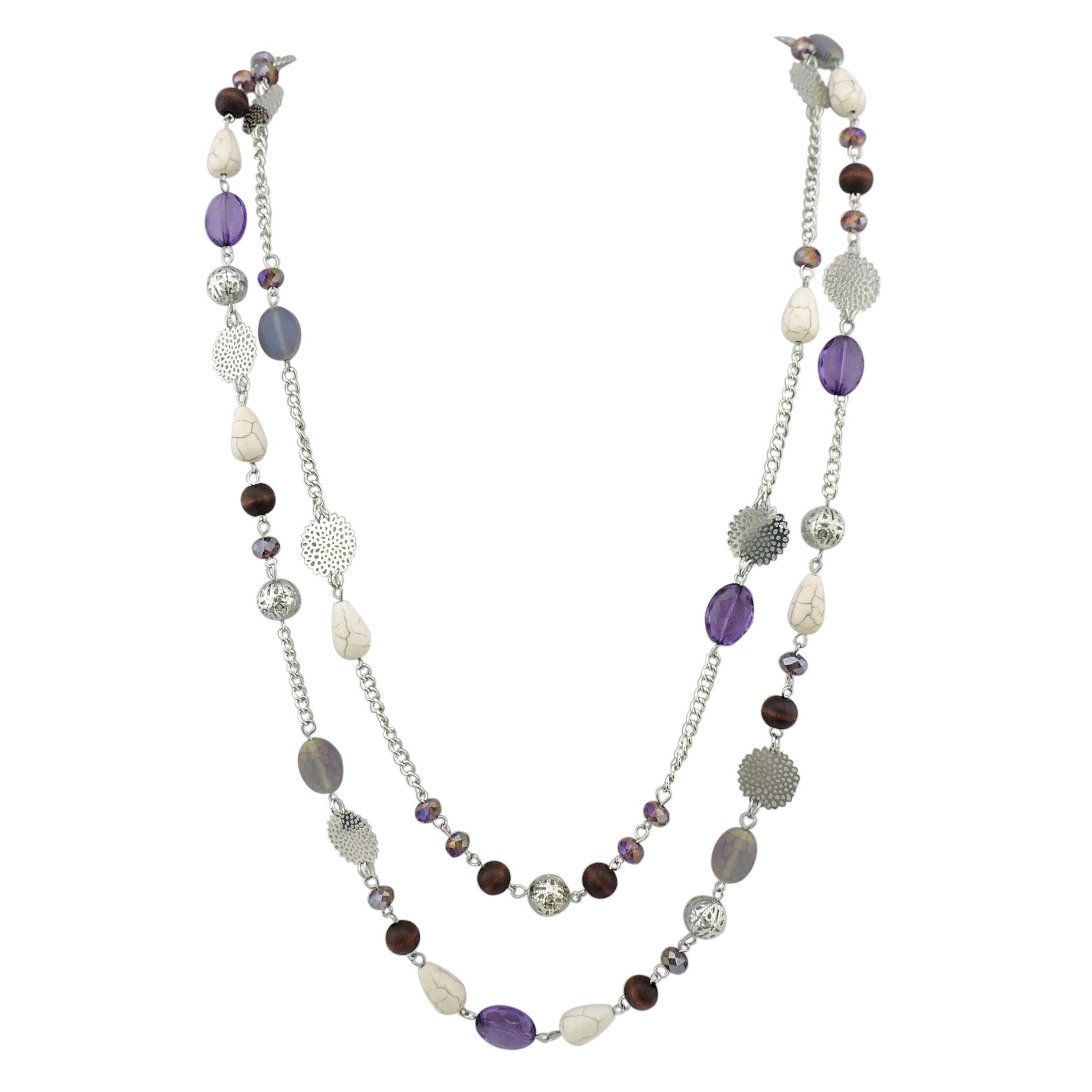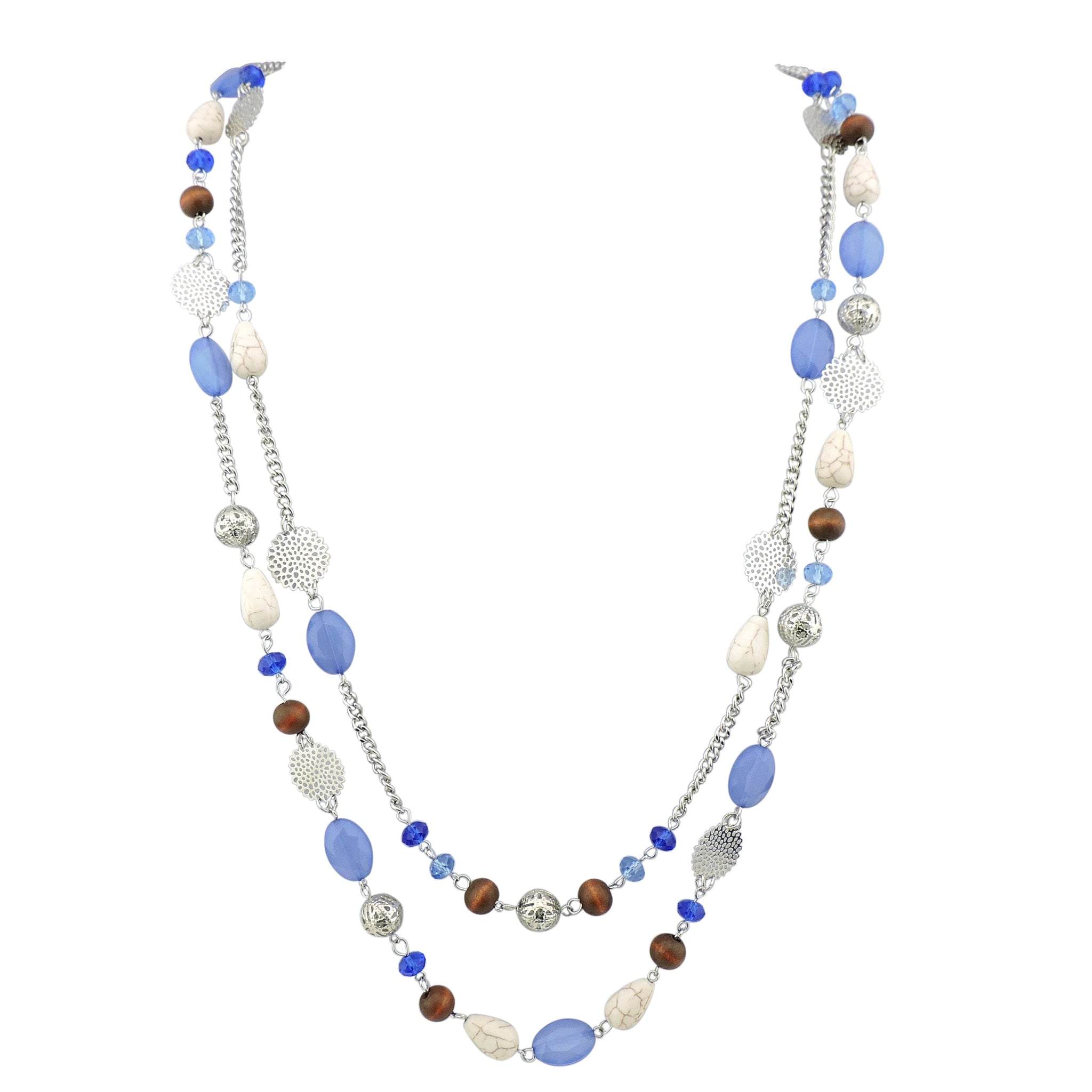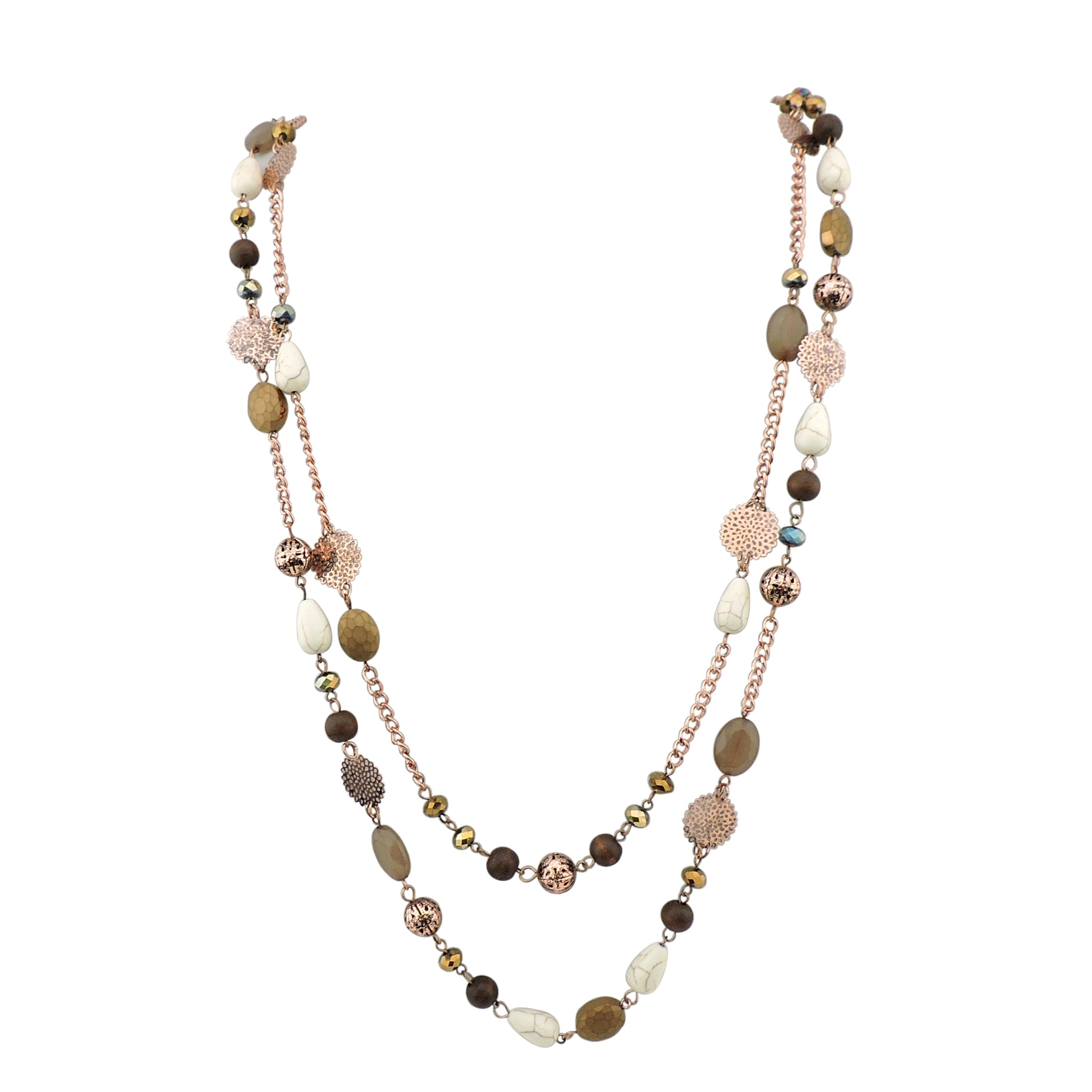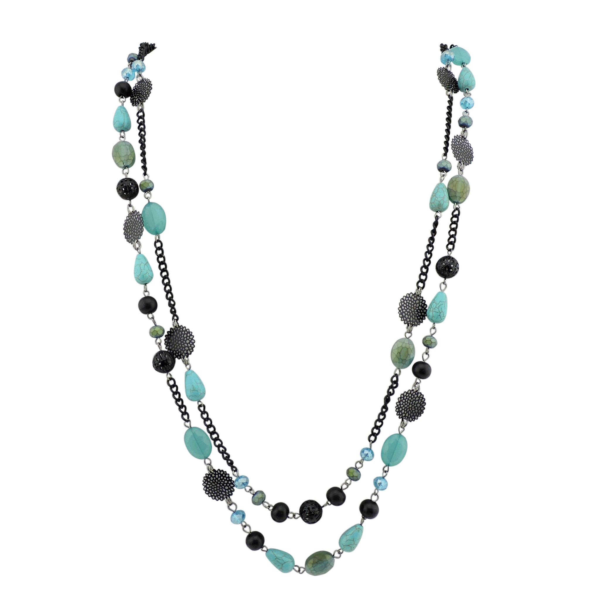 BOCAR Link Chain 2 Layer Crystal Wood Acrylic Colorful Women Party Long Necklace Gift