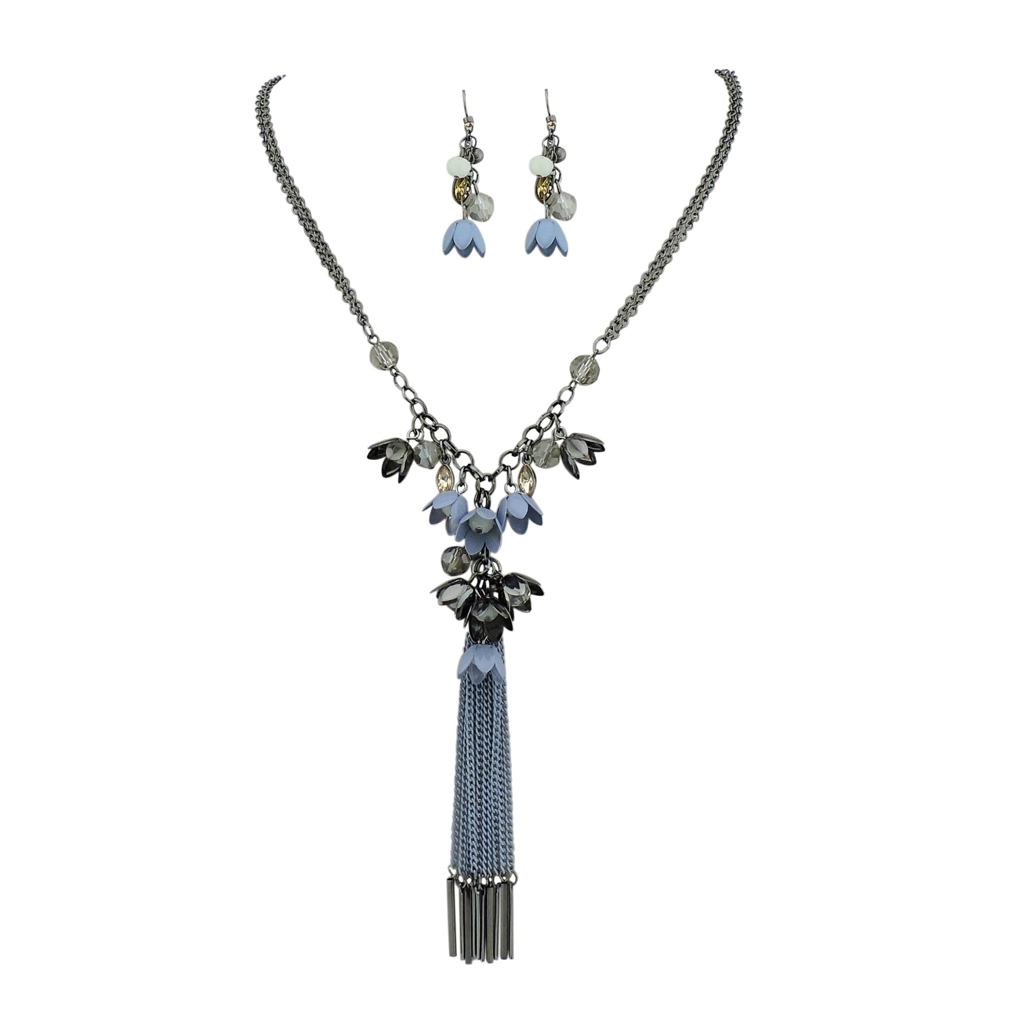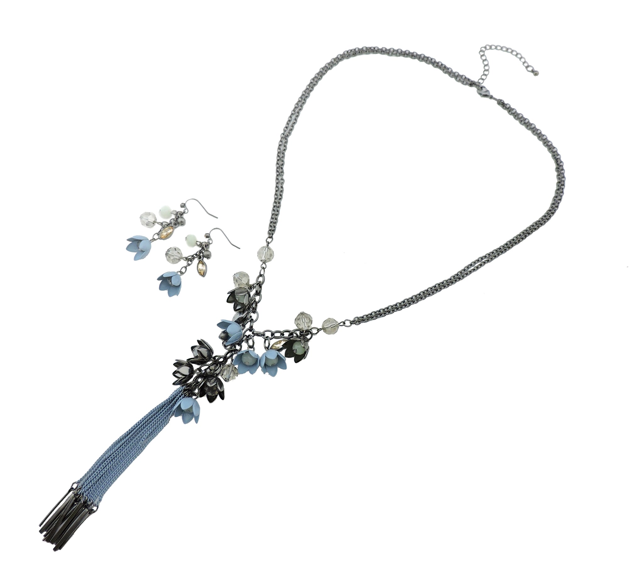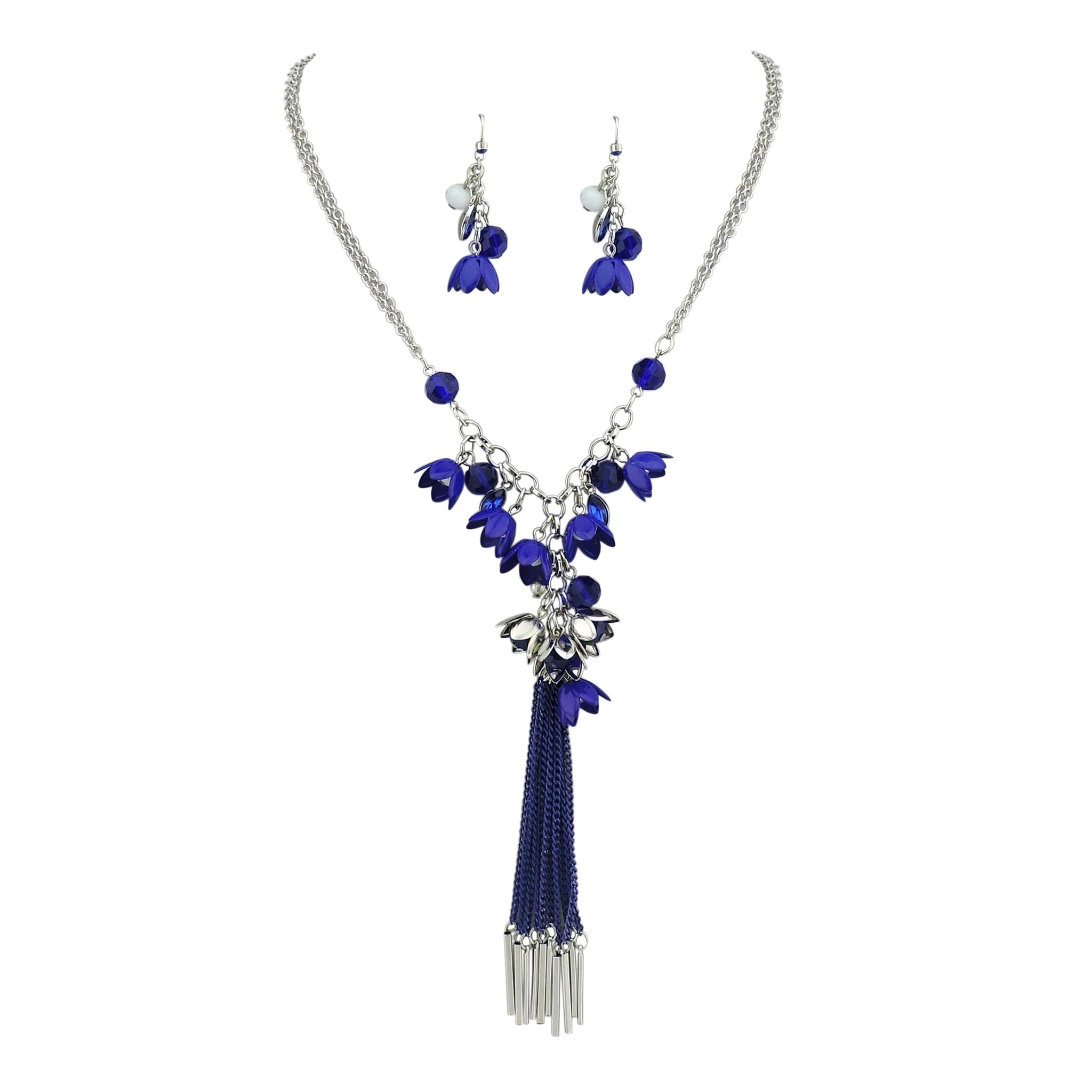 Bocar Long 2 Layer Chain Unique Flower Pendant Tassels Necklace Earrings Women Jewelry Set