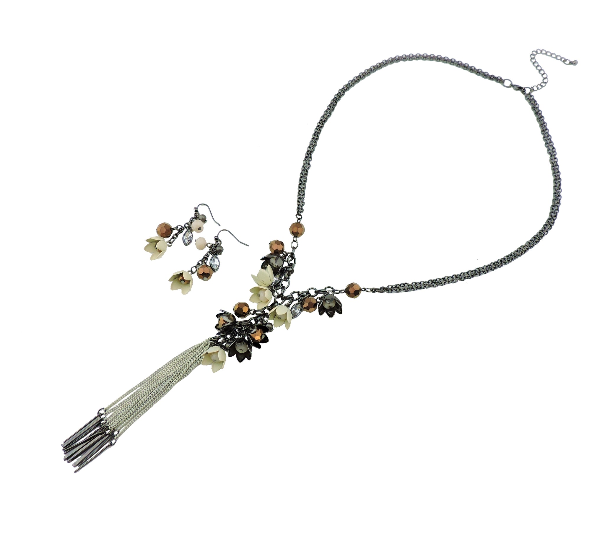 Size: necklace length 24", pendant 6", extension chain 3", earring length 2"