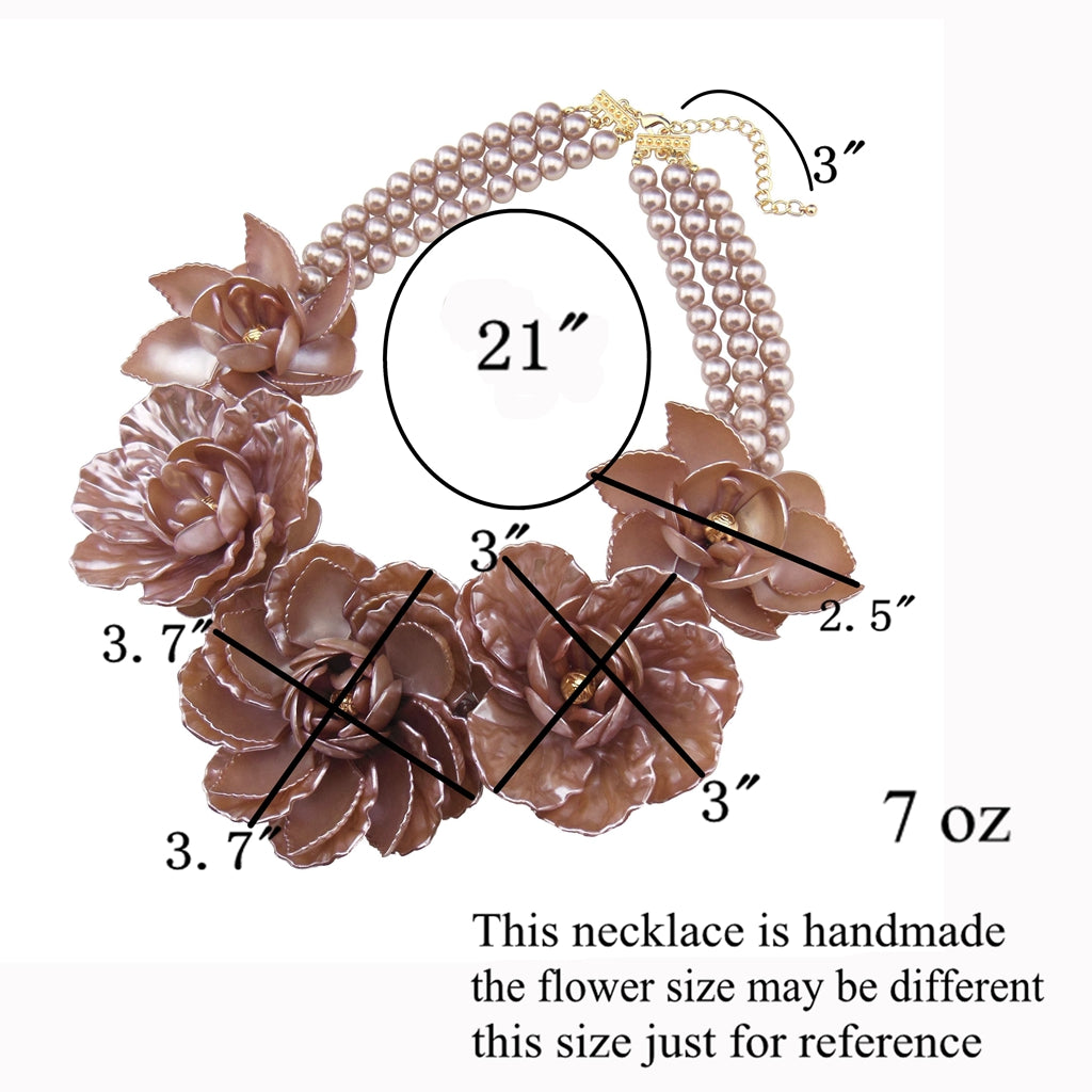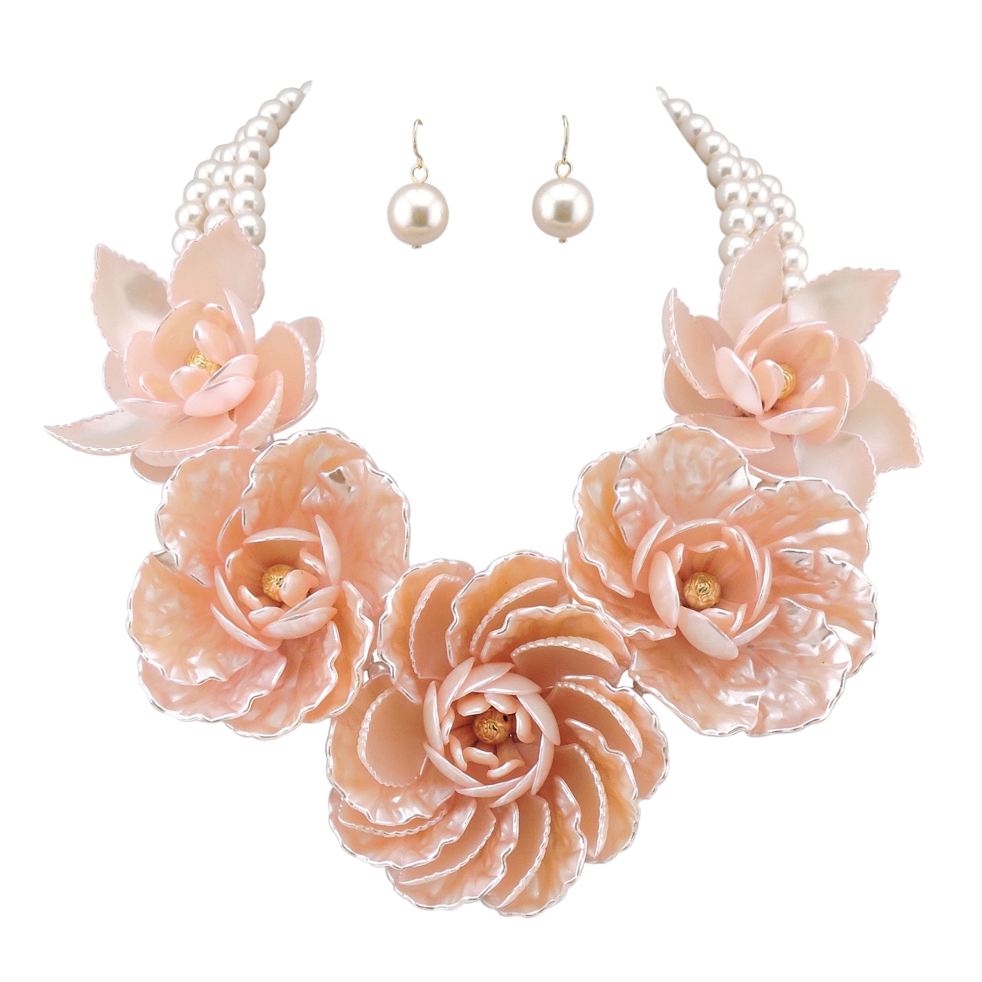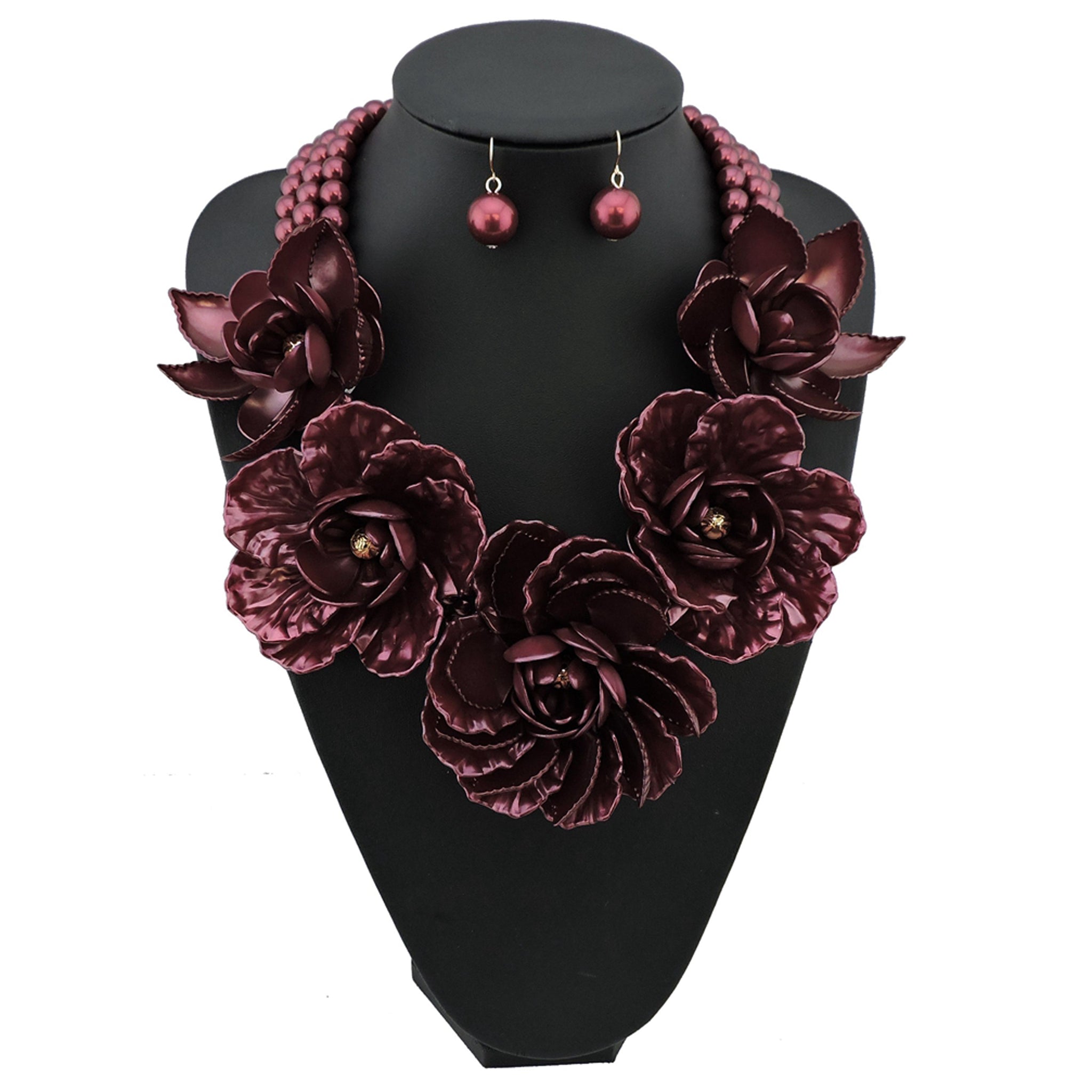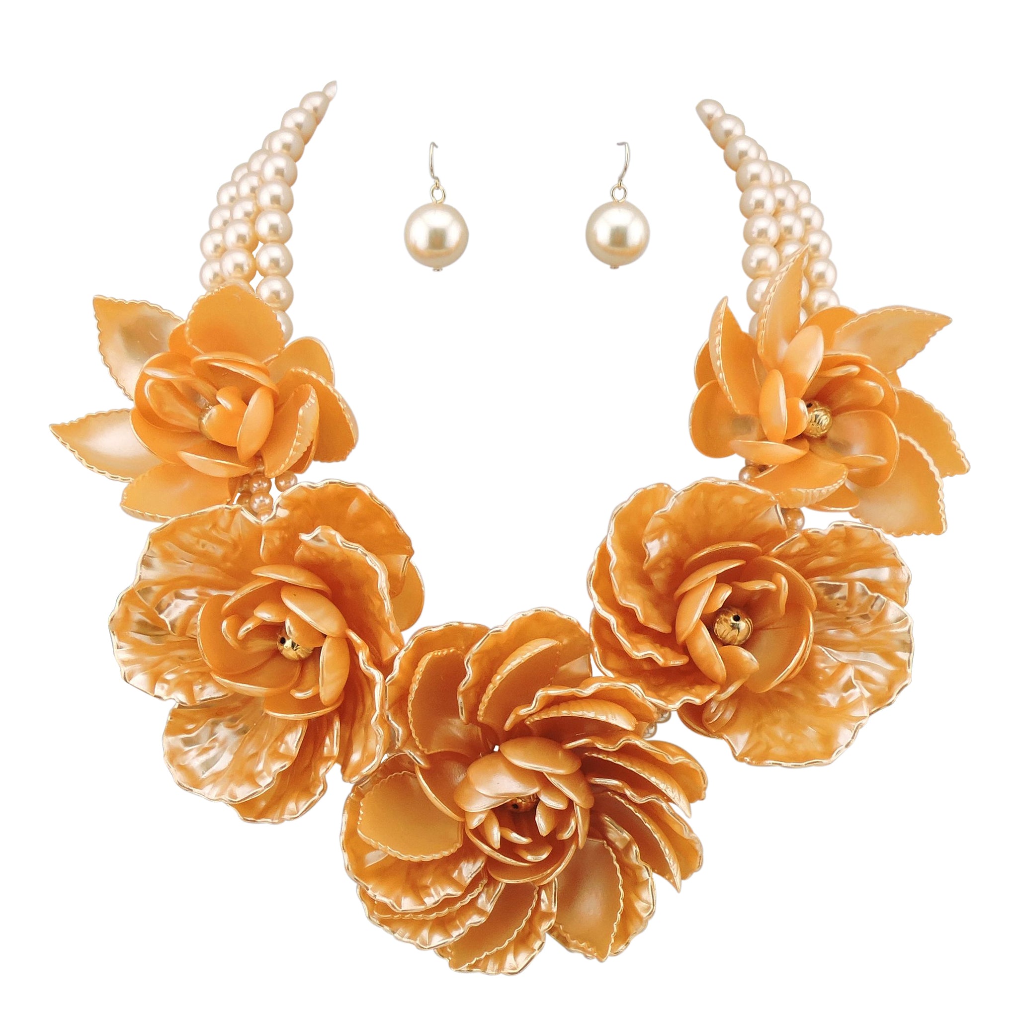 BOCAR Statement Big Pendant Pearl Flower Necklace Earrings Jewelry Set for Women