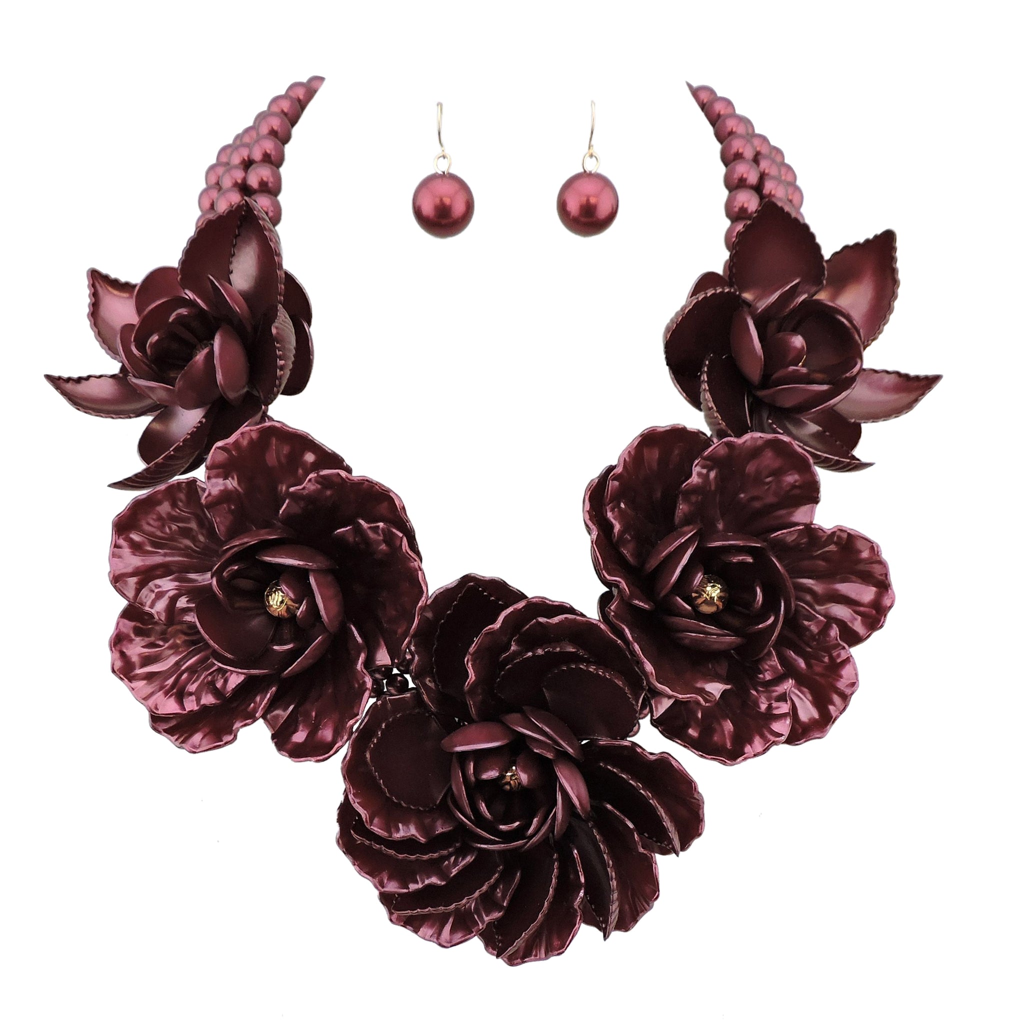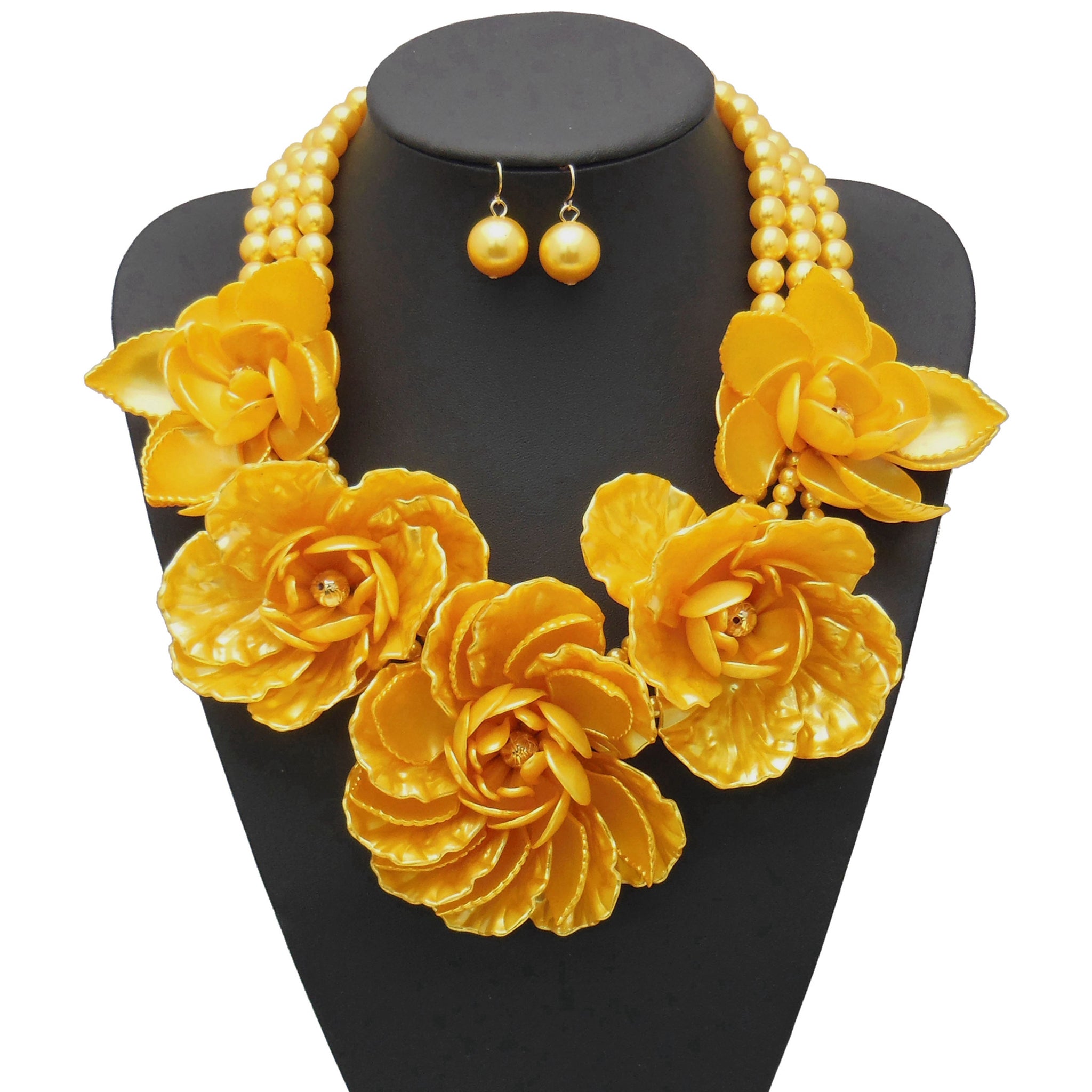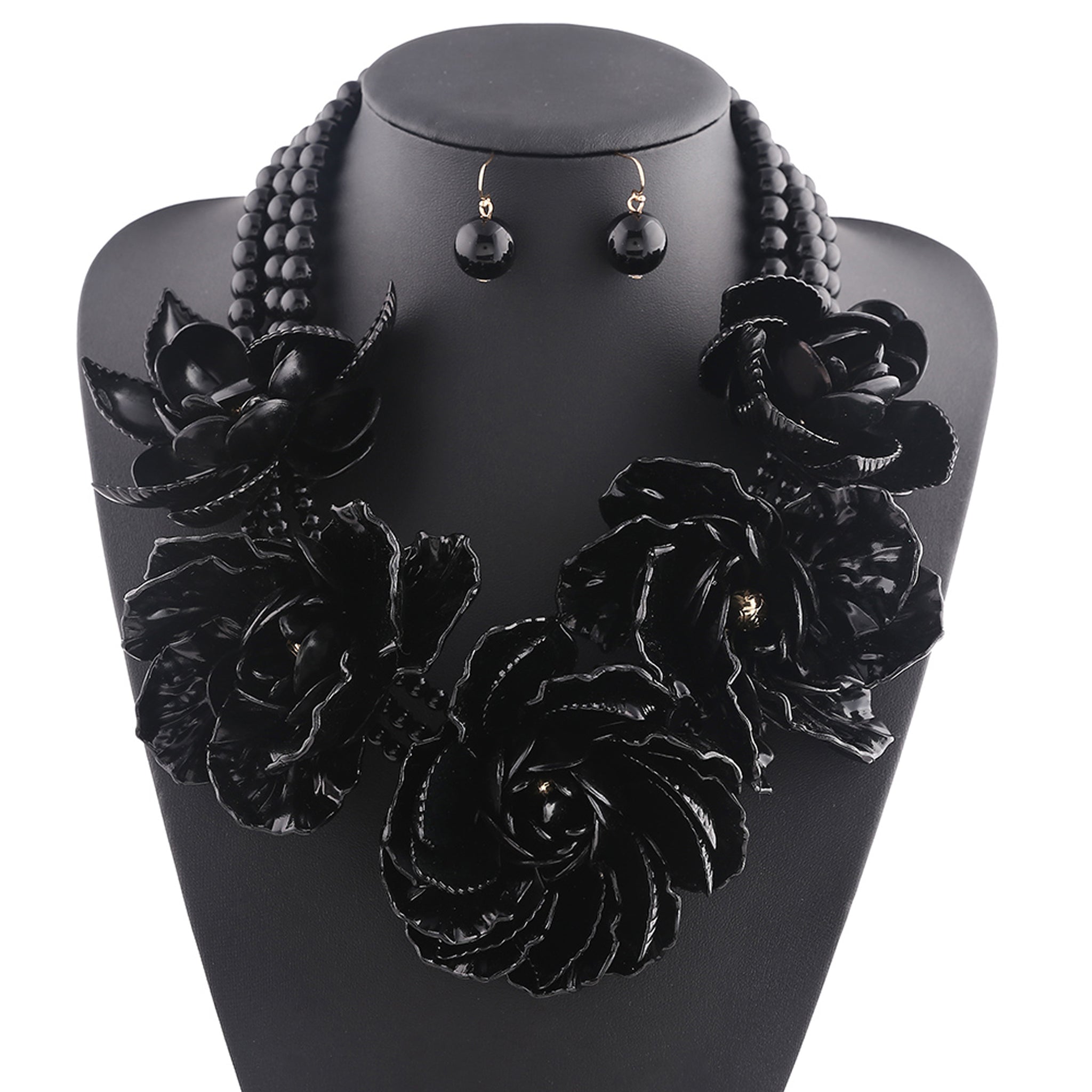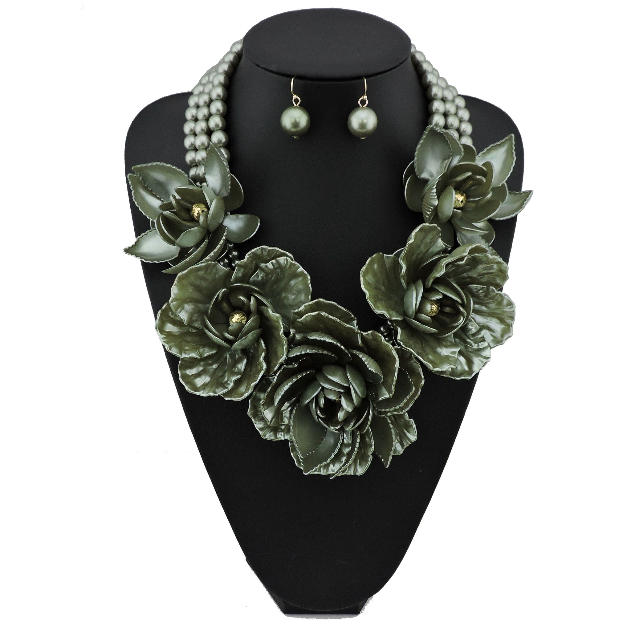BOCAR Statement Big Pendant Pearl Flower Necklace Earrings Jewelry Set for Women