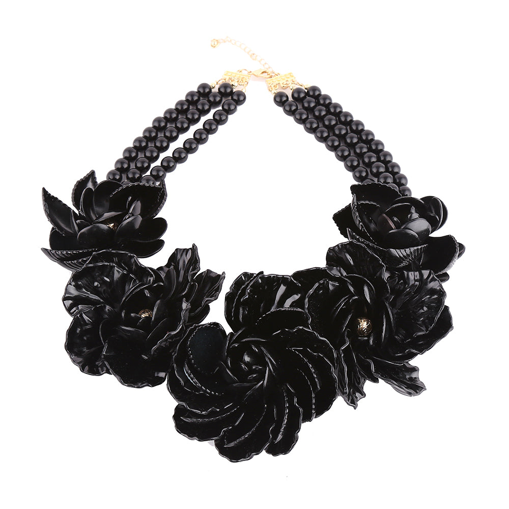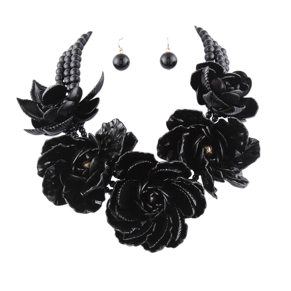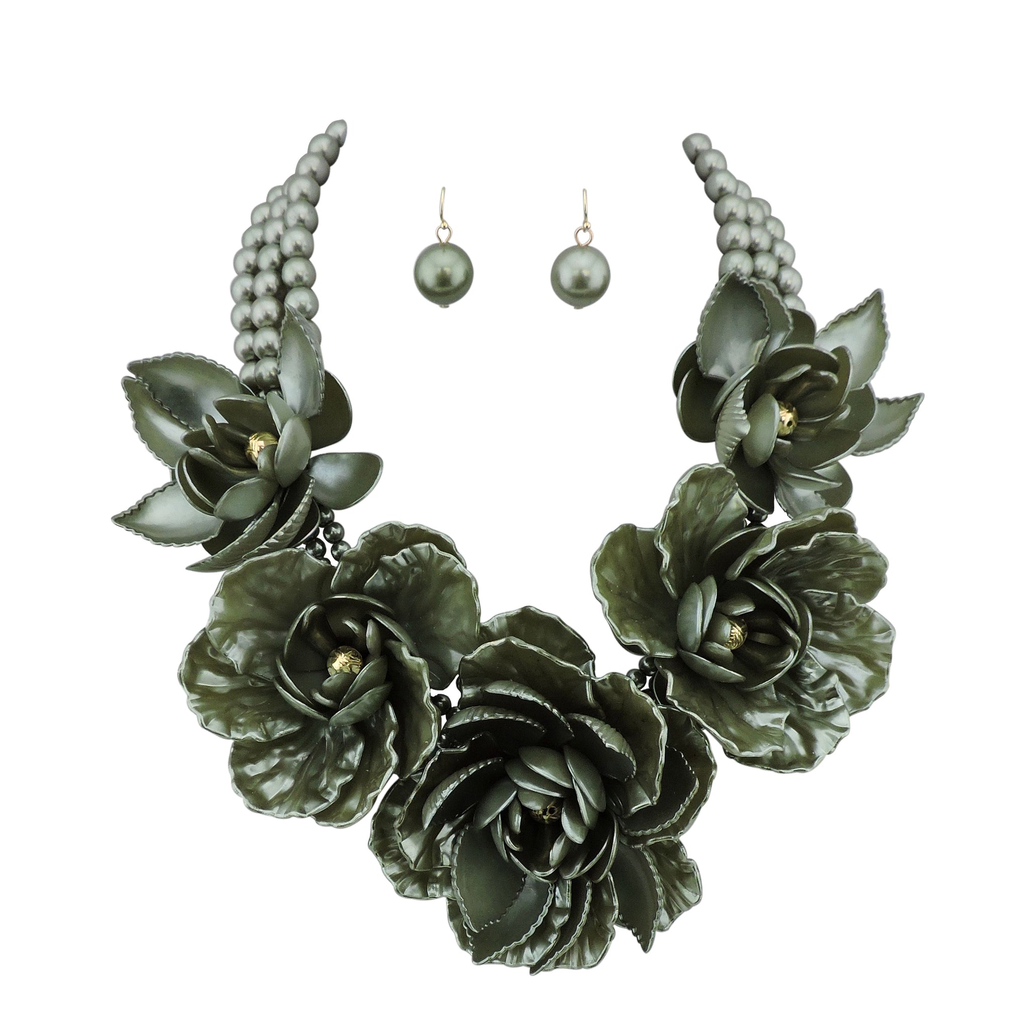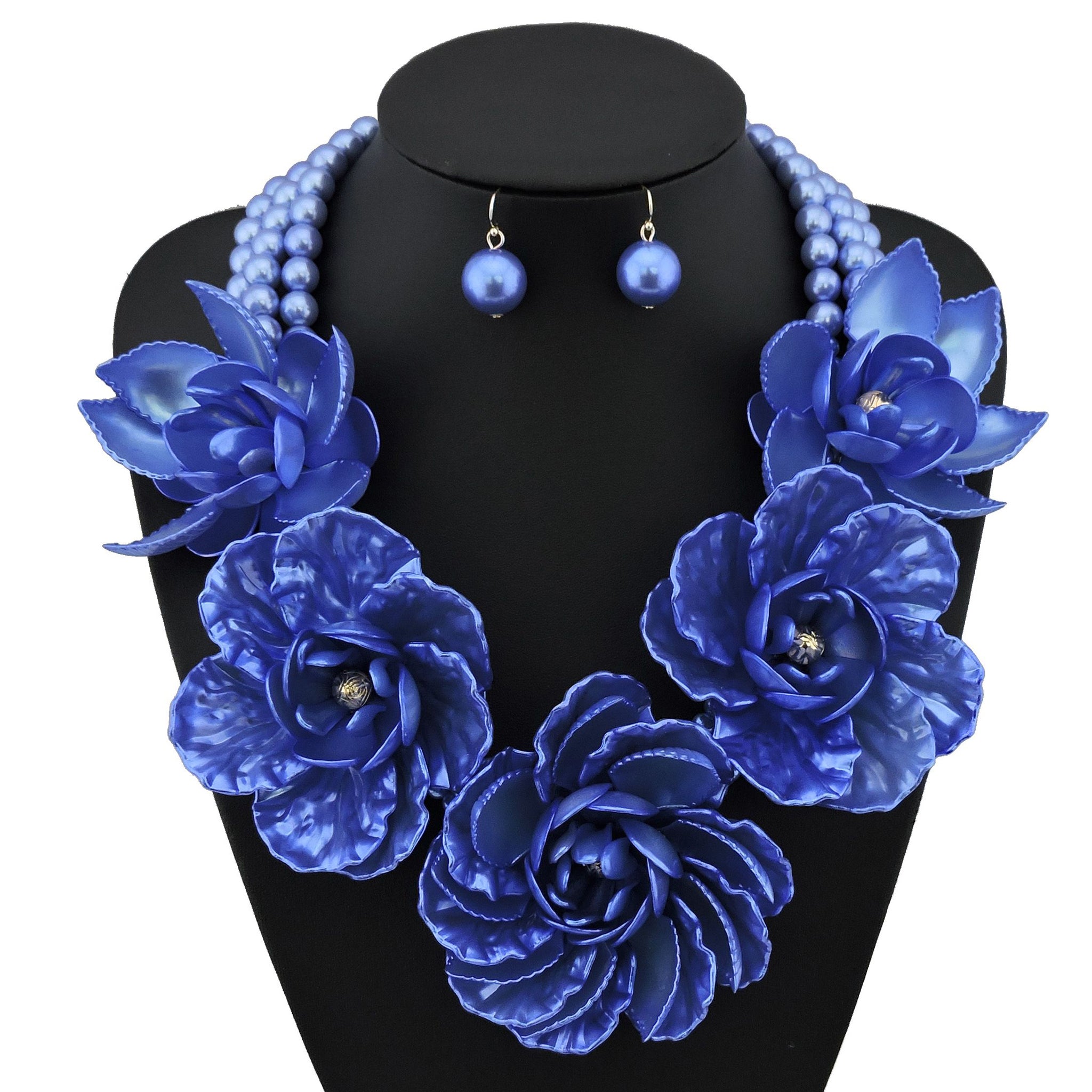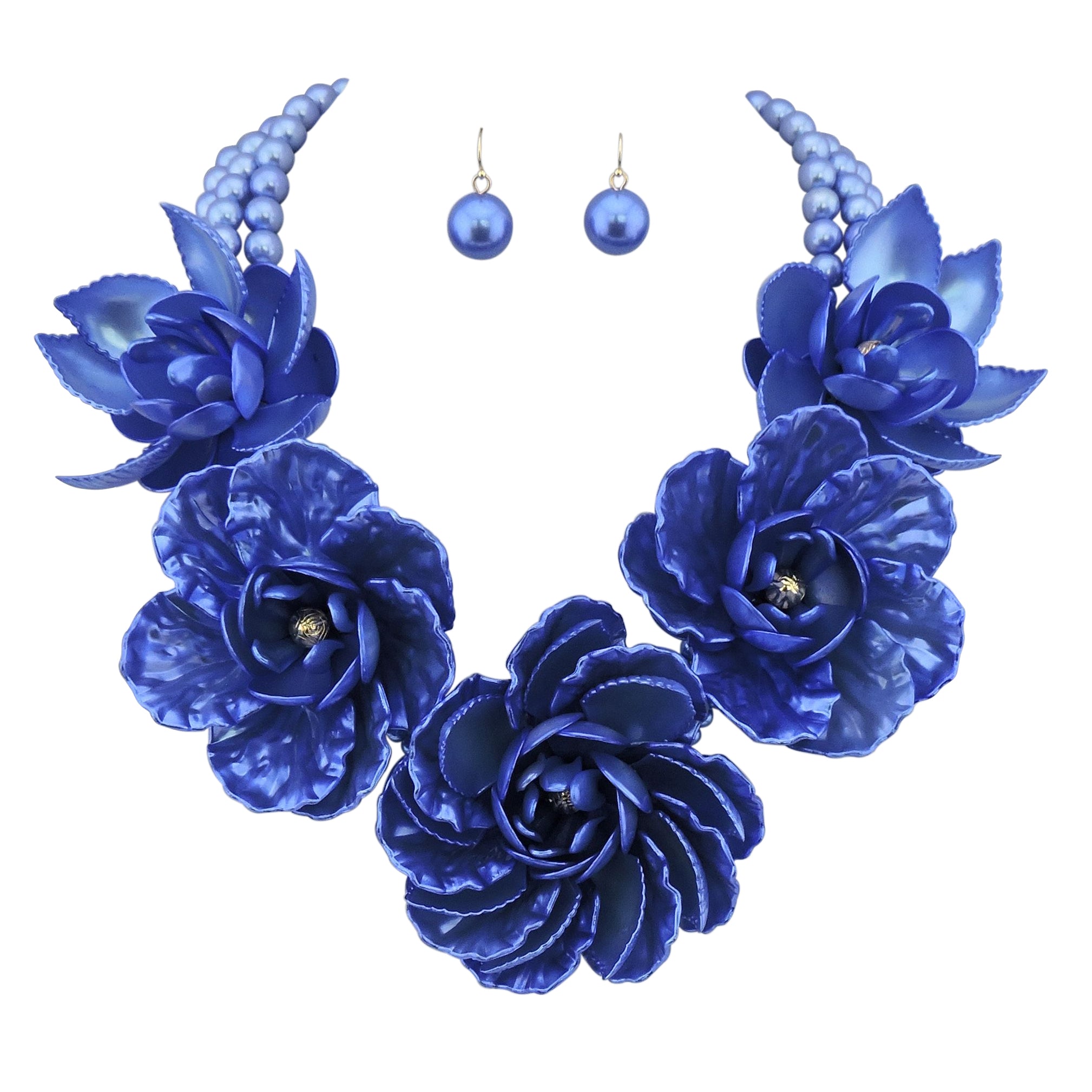 BOCAR Statement Big Pendant Pearl Flower Necklace Earrings Jewelry Set for Women